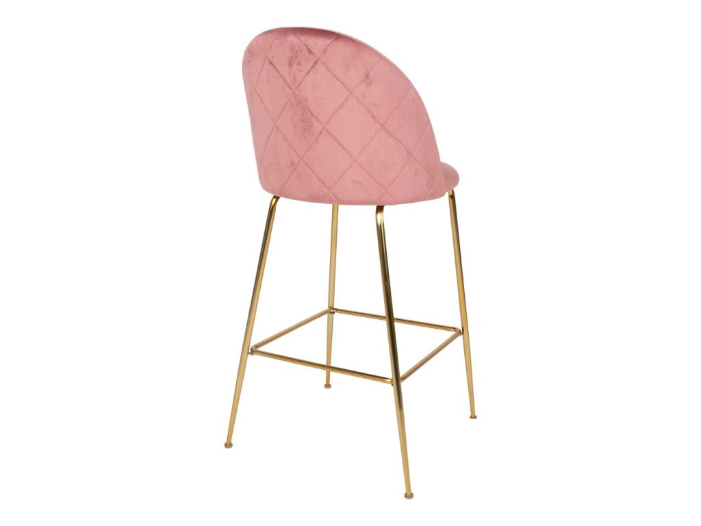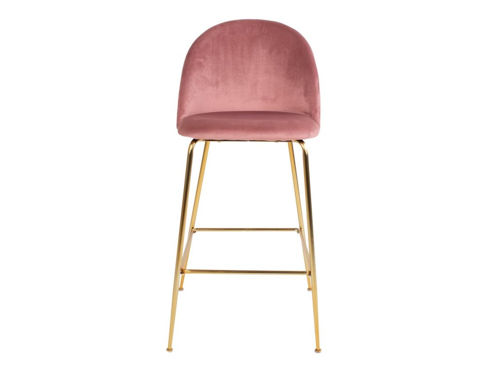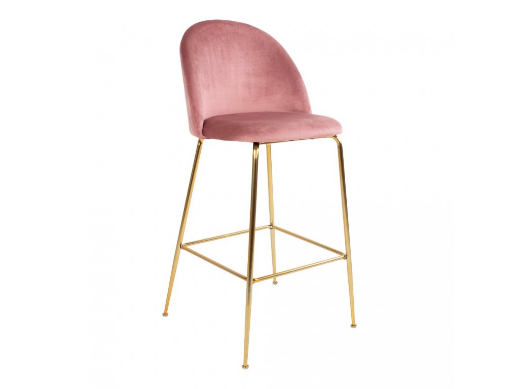 Barová židle Louis je vyrobena v luxusním stylu, kdy sedák a opěrka jsou vyrobeny ze sametového čalounění růžové barvy. Opěrka je v zadní části prošívaná. Rám je kovový s mosaznou povrchovou úpravou. Dolní část rámu je spojena a vytváří tak pohodlnou opěrku nohou