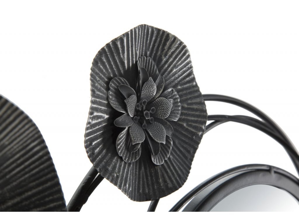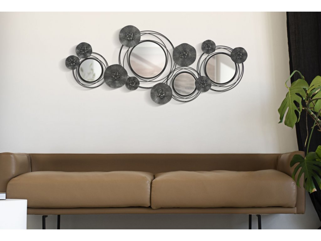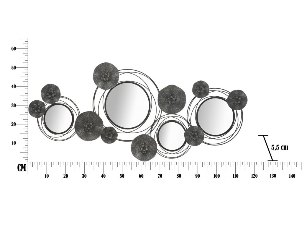 Nástěnná dekorace a zrcadlo v jednom. To je tento unikátní interiérový doplněk Dirak A. Hlavním materiálem je kov černé a šedé barvy, kdy hlavními motivy jsou nádherné květy umístěné na jemných kruhových liniích okolo čtyř zrcadel. Jedná se o naprosto jedinečný a úchvatný designový prvek.