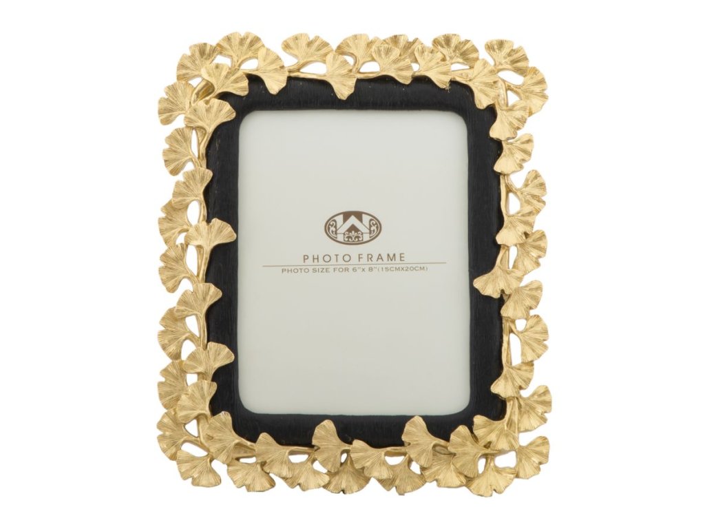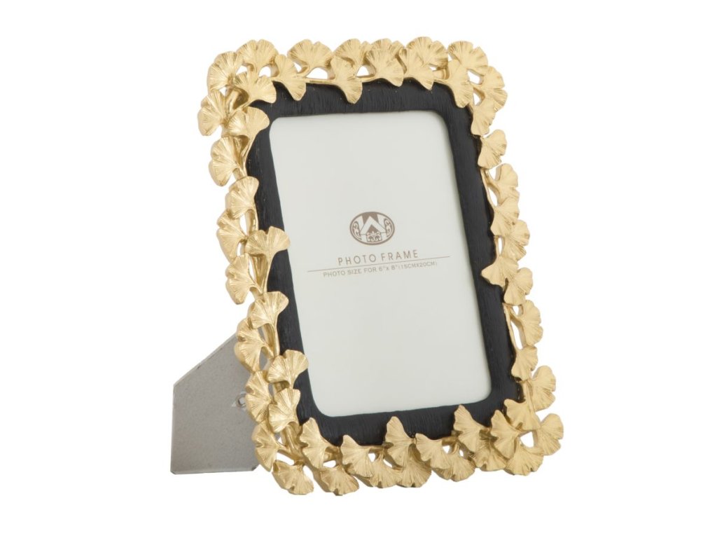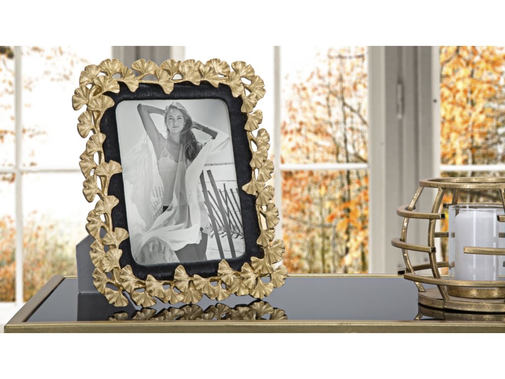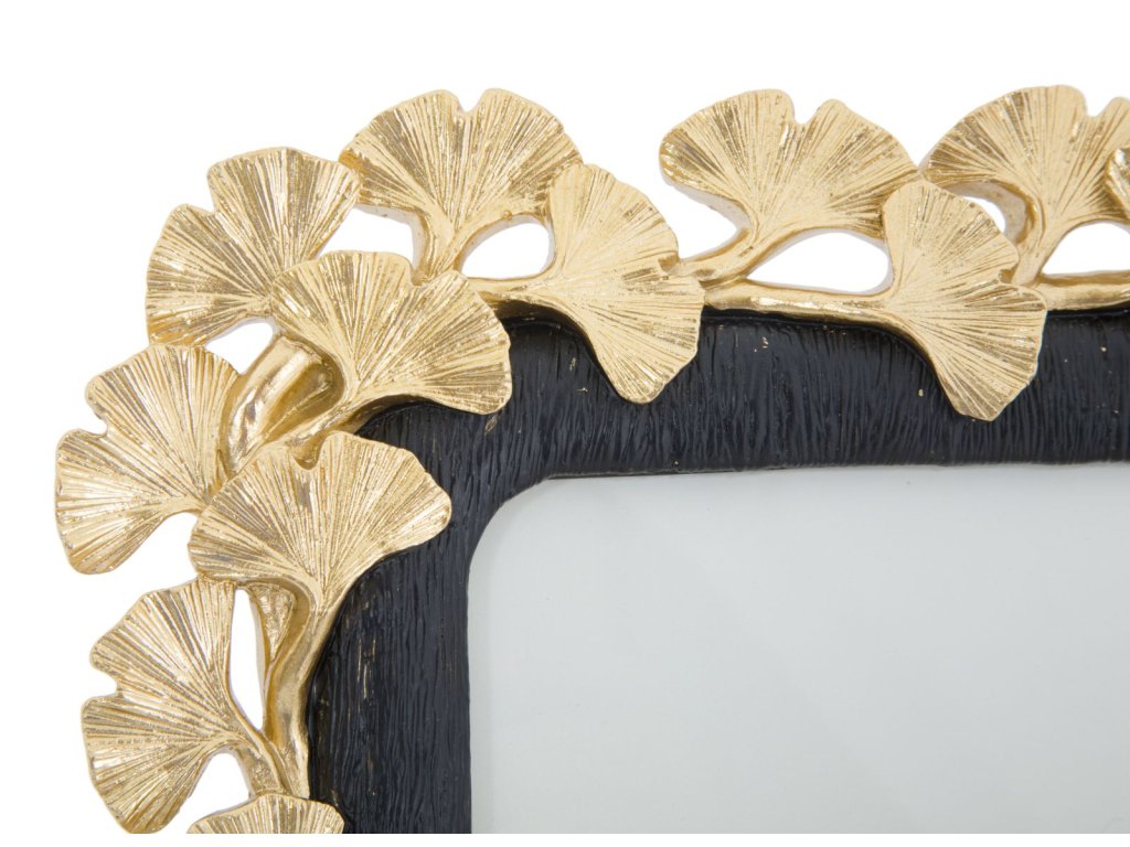 Fotorámeček Ginko S je vyroben z polyresinu zlaté a černé barvy v GLAM stylu. Rám má podél svého okraje umístěny lístky stromu ginko, které zjěmňují celkový vzhled. Fotorámečky jsou ideálním řešením, jak dodat dotek světla do vašeho interiéru.