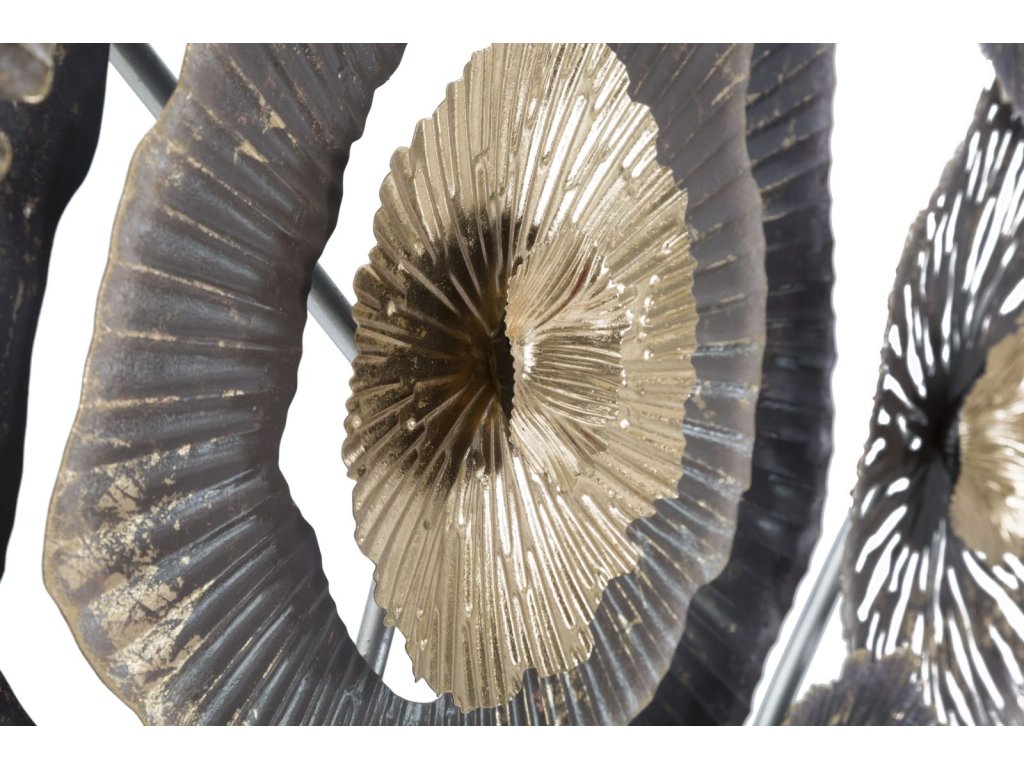 Nástěnná dekorace Irm B je vyrobena z kovu v různých odstínech a mixu barev. Je 3D, tedy plastická. Hlavním motivem je desing připomínající listy, květiny a přírodu. Přinese vám jemně exotický nádech a přizpůsobí se každé místnosti.