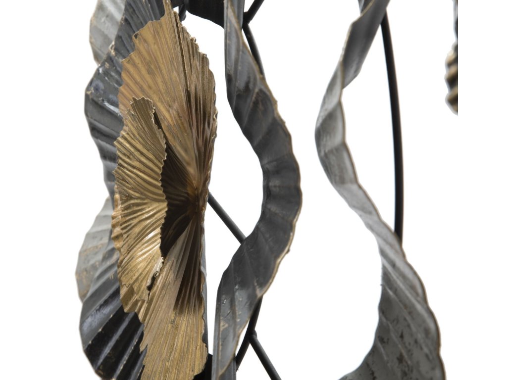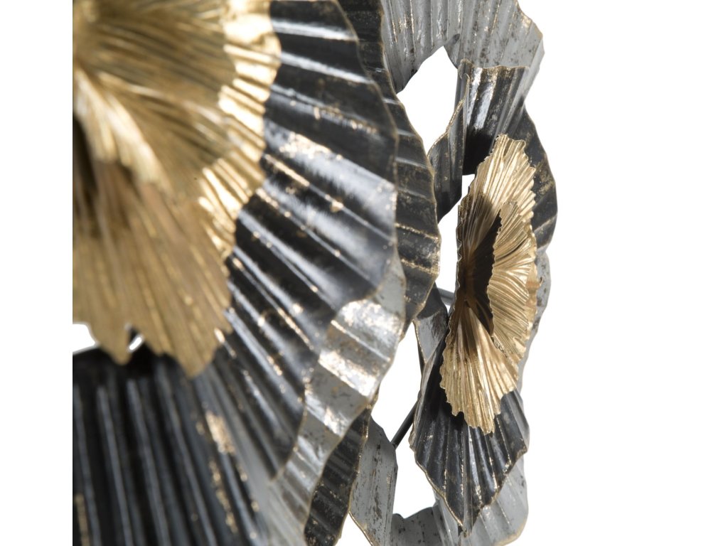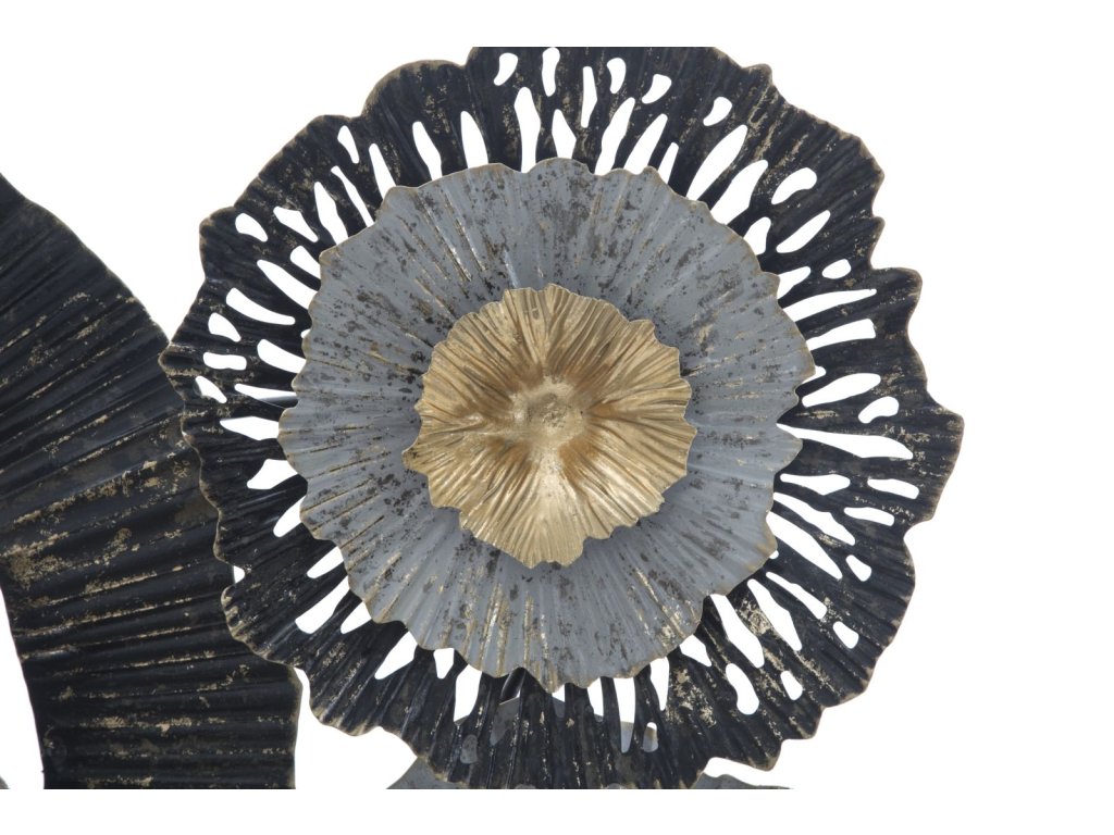 Nástěnná dekorace Ival je vyrobena z kovu v různých barevných odstínech. Je 3D, tedy plastická. Hlavním motivem je zde několik abstraktních květů v tmavších tónech kombinovaných se zlatou. Přinese vám jemně exotický nádech a přizpůsobí se každé místnosti.