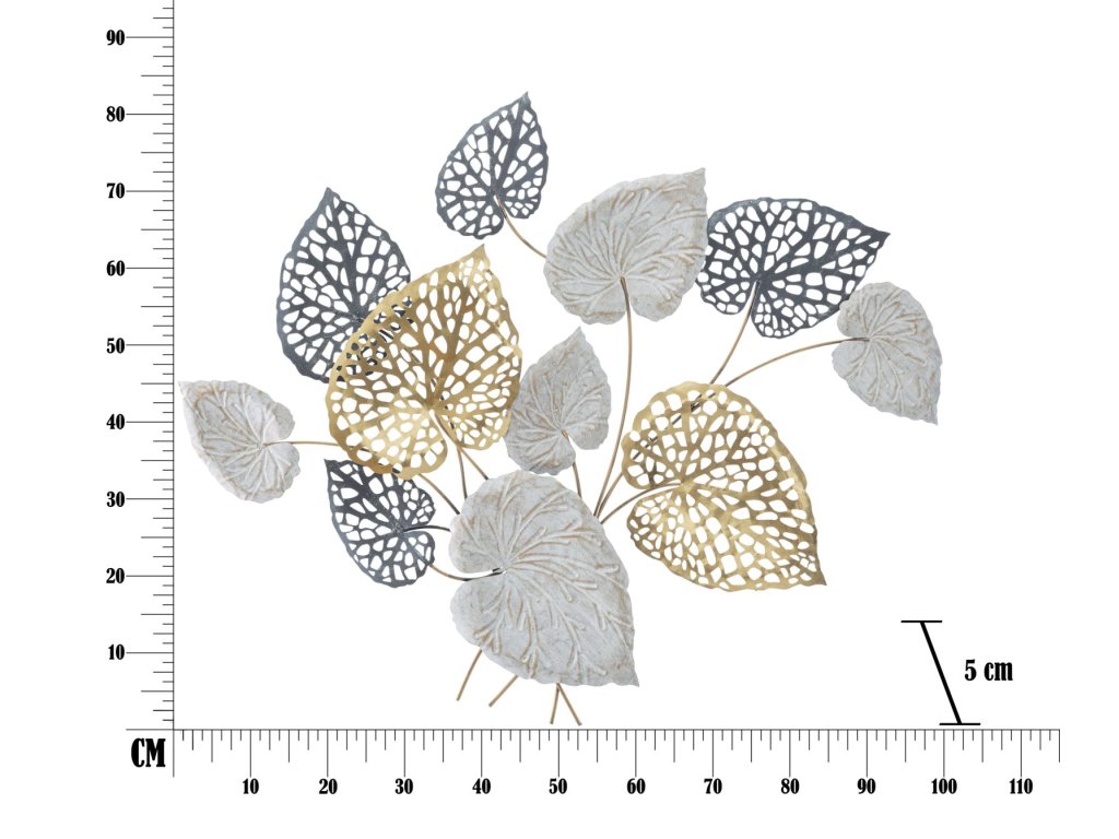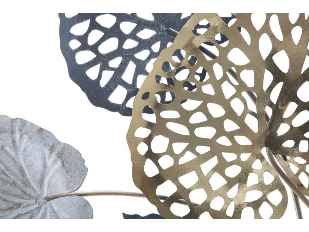 Nástěnná dekorace Otak B je vyrobena z kovu v několika barevných odstínech. Je 3D, tedy plastická. Hlavním motivem jsou velké listy, část je perfoforovaná, část plná, dodává celku krásný vyvážený vzhled. Přinese vám do interiéru přírodní nádech a přizpůsobí se každé místnosti.