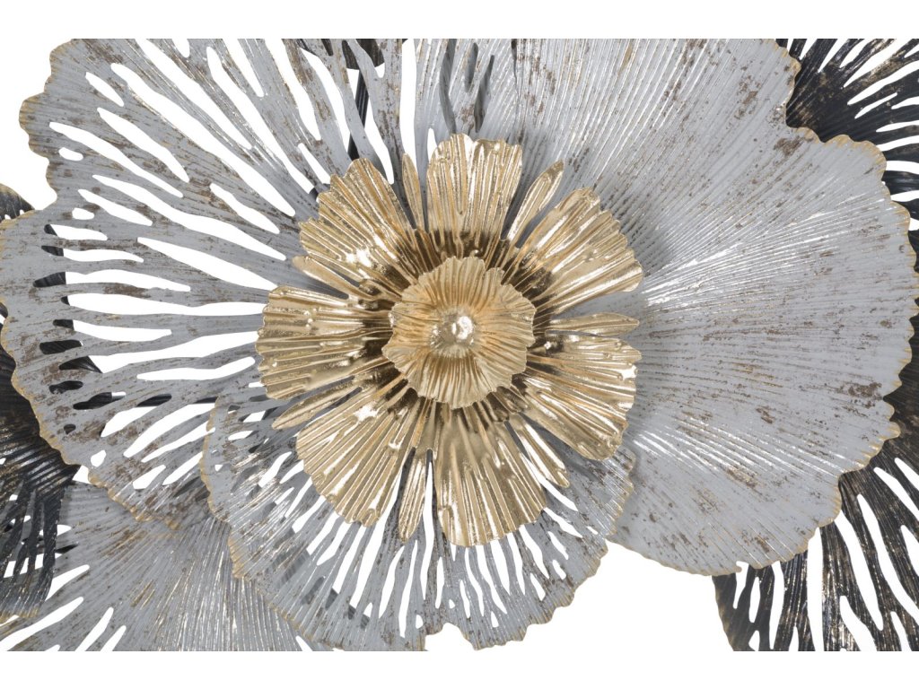 Nástěnná dekorace Poli B je vyrobena z kovu v několika barevných odstínech. Je 3D, tedy plastická. Hlavním motivem je velký květ a po stranách listy, kdy část je perfoforovaná, část plná. Přinese vám do interiéru přírodní nádech a přizpůsobí se každé místnosti.