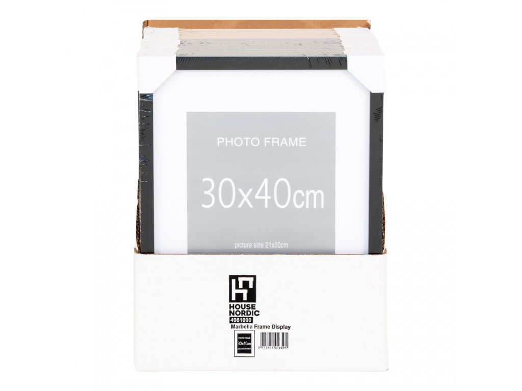 Set 10 ks fotorámečků Optic má klasický severský design. Velikost rámu je 30x40 cm a lze je zavěsit na výšku i šířku dle chuti a nálady a dozdobit s nimi interiér. 5ks je s černým rámem a 5 ks s přírodním dekorem. Vnitřní rozměr pro fotku má 21x30 cm.