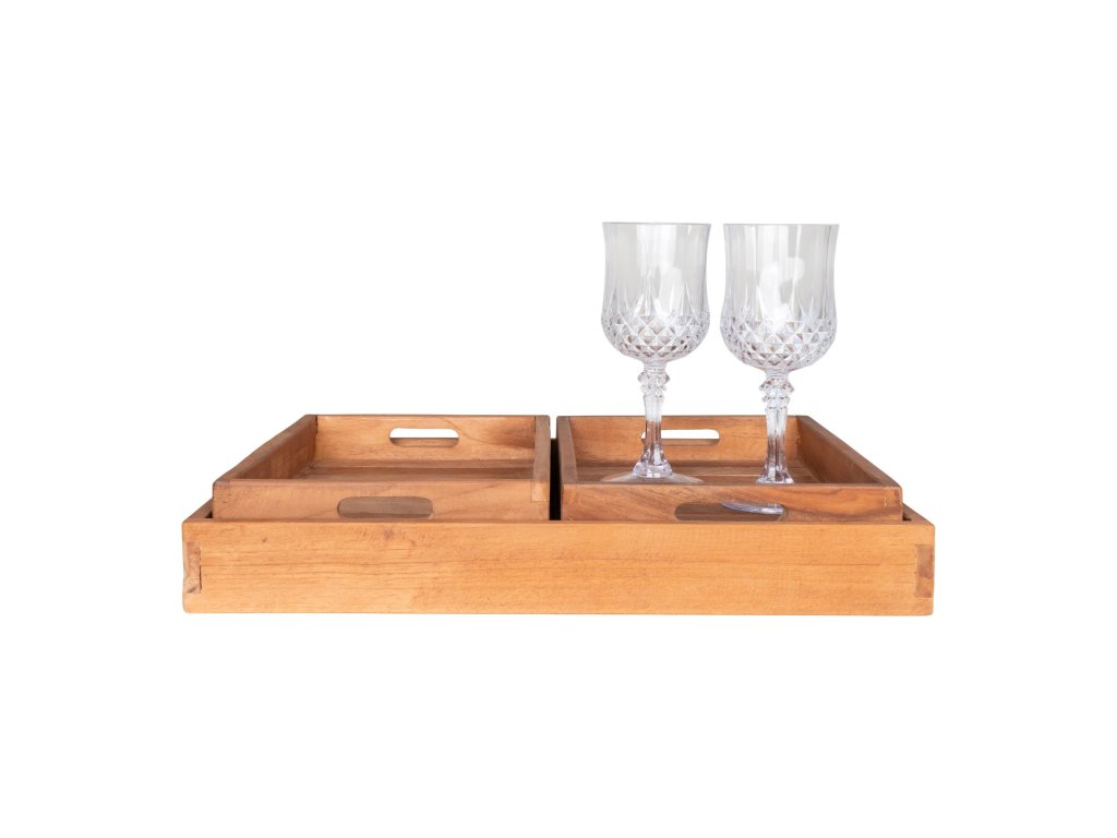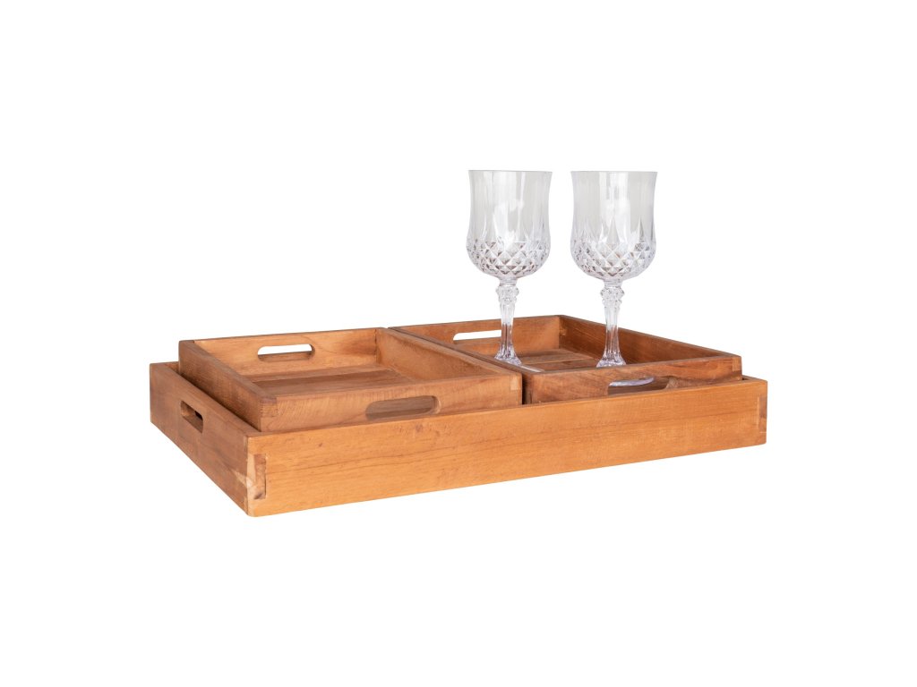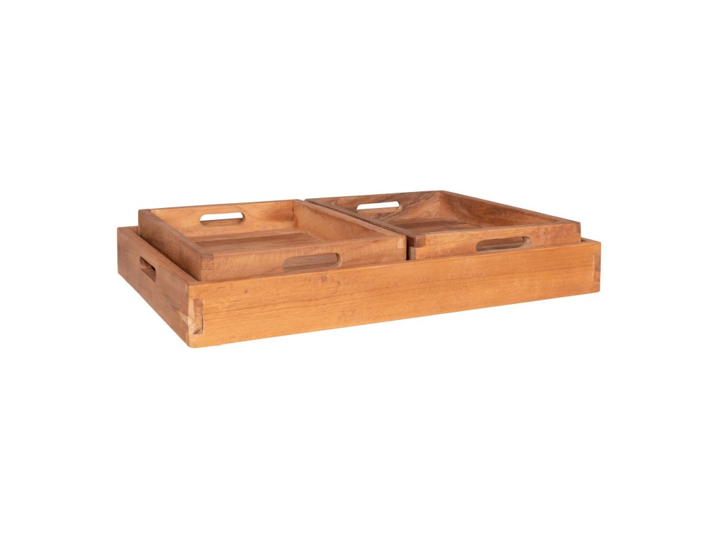 Sada 3 ks táců Marko z hnědého teakového dřeva