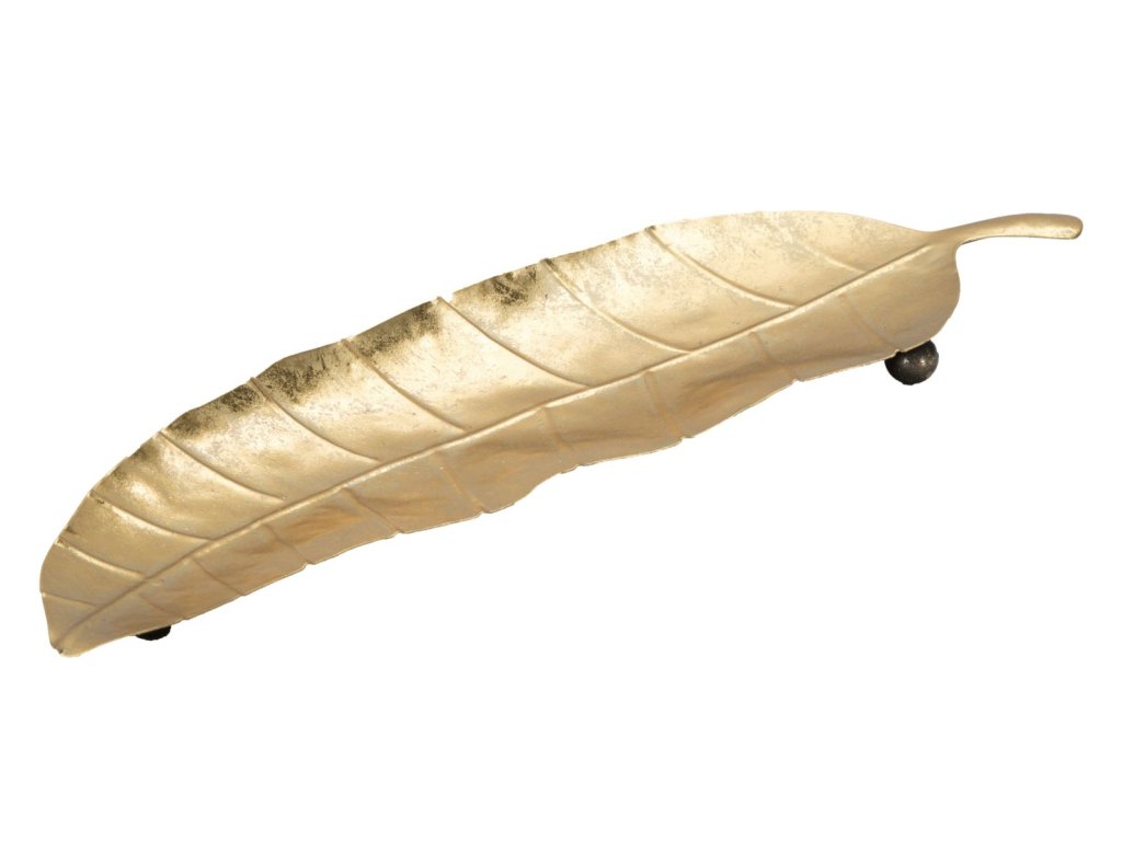 Zlatá kovová dekorativní mísa Mauro Ferretti Leaf 38x3x11 cm