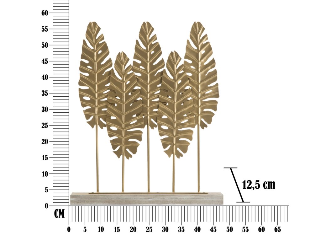 Elegantní stolní dekorace Jerkal B je vyrobena z kovu zlaté barvy v designu svislých listů umístěných na základně z MDF. Stane se nádherným doplňkem vašeho interiéru v GLAM stylu.