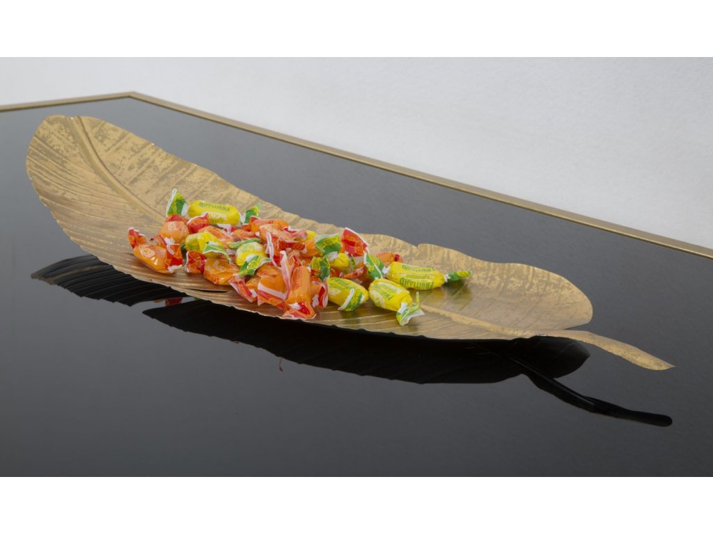 Elegantní a praktický zlatý tác Later potěší zejména milovníky zlatého designu. Je vyroben z kovu ve tvaru listu. Hodí se jak do interiéru na vyzdobení dekoracemi či do předsíně.