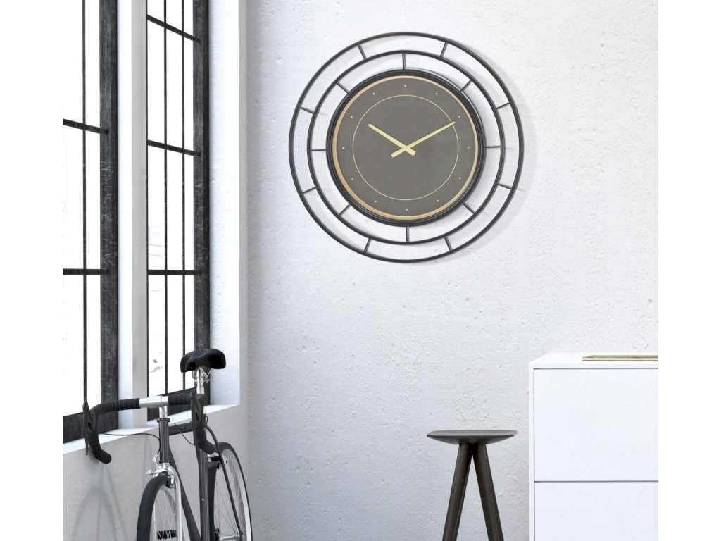 Nástěnné hodiny Mauro Ferretti Centrus, 70x5,5 cm, černá/zlatá