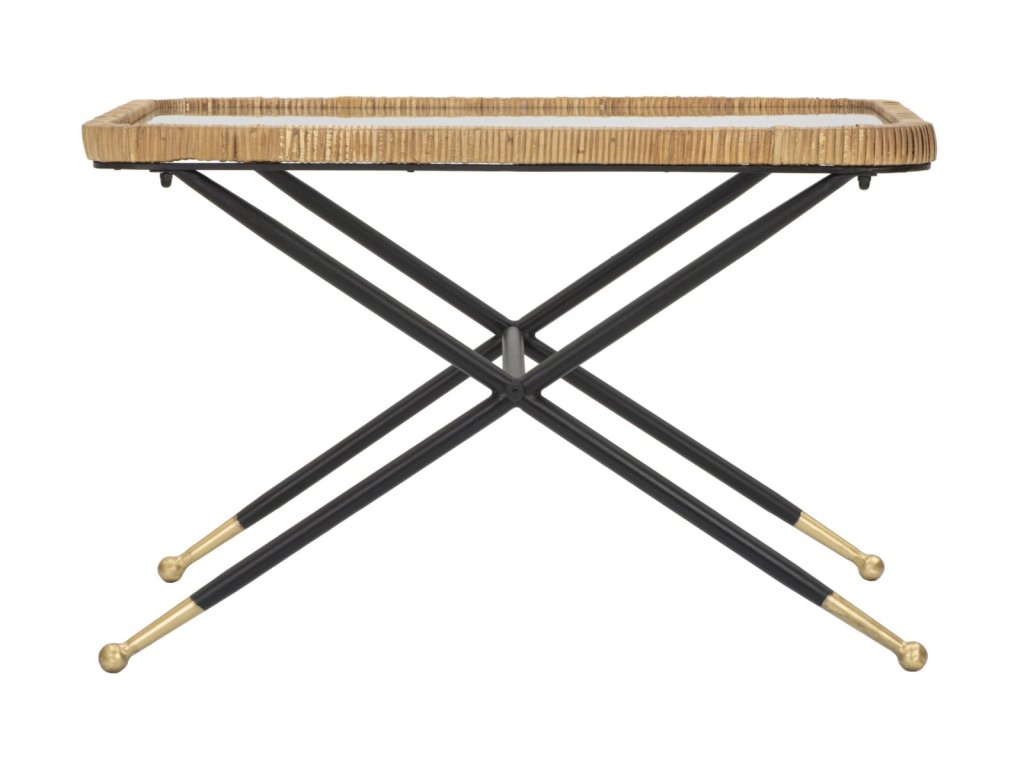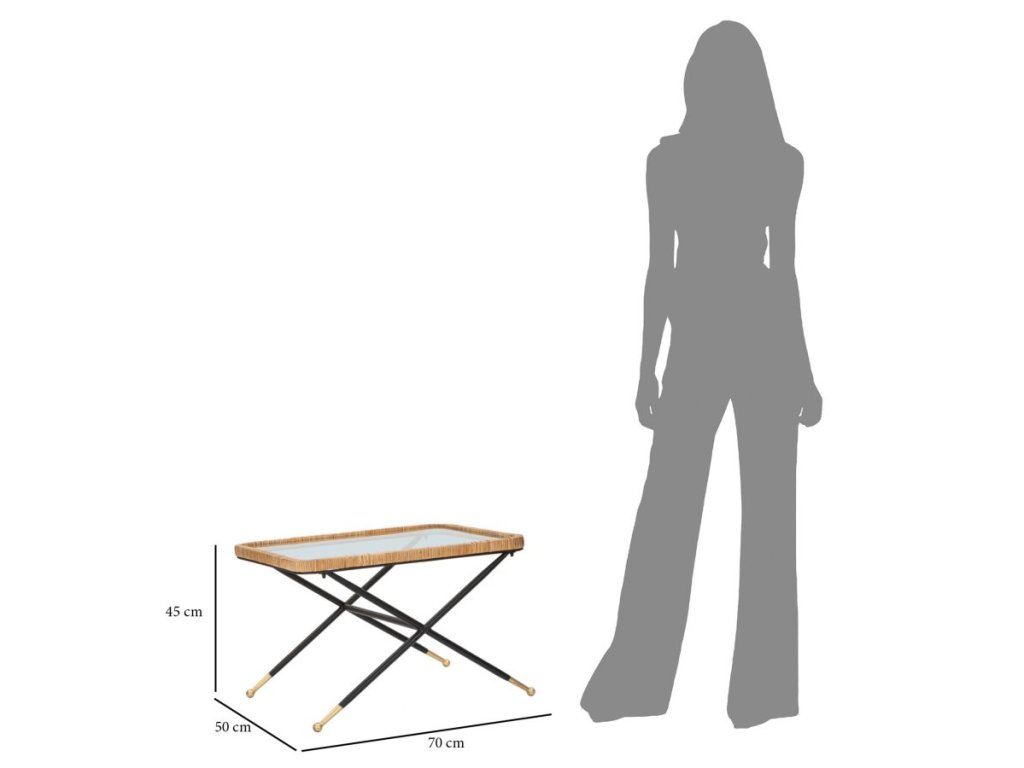 Konferenční stolek Rovus je vyroben z pevného černého kovového rámu se skleněnou deskou orámovanou v ratanové vazbě. Zvláštní je zakončení nohou zlatou spodní částí. Jednoduchý, ale podmanivý design z něj dělá perfektní doplněk ke každému interiéru.