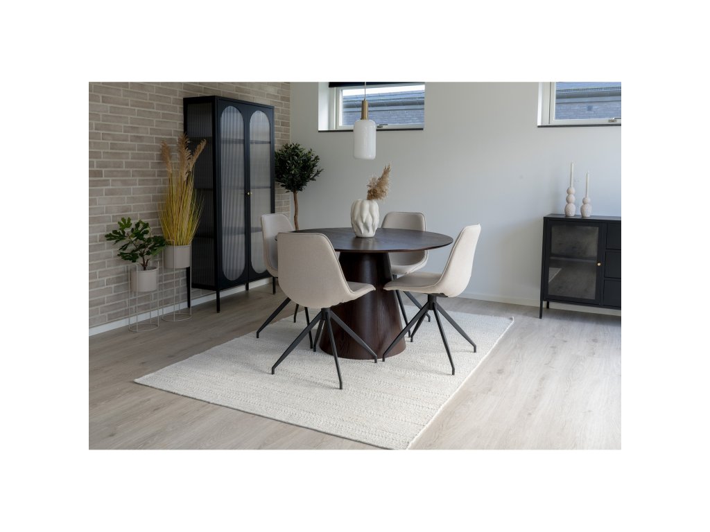 Jídelní židle otočná Monaco, potah polyester, písková je pohodlnou židlí bez područek k pracovnímu nebo jídelnímu stolu. Sedák je čalouněn 100% potahem z polyesteru s PU pěnou na PP skořepině, kraje lemovány obšitím, sedák a opěradlo opticky rozděleno vyšívaným vzorem. Podnož je z oceli, barvená do černa. Jídelní židle je na stabilních čtyřech nohách s plastovými krytky proti poškrábání podlahy a bude chloubou vaší jídelny nebo kanceláře.