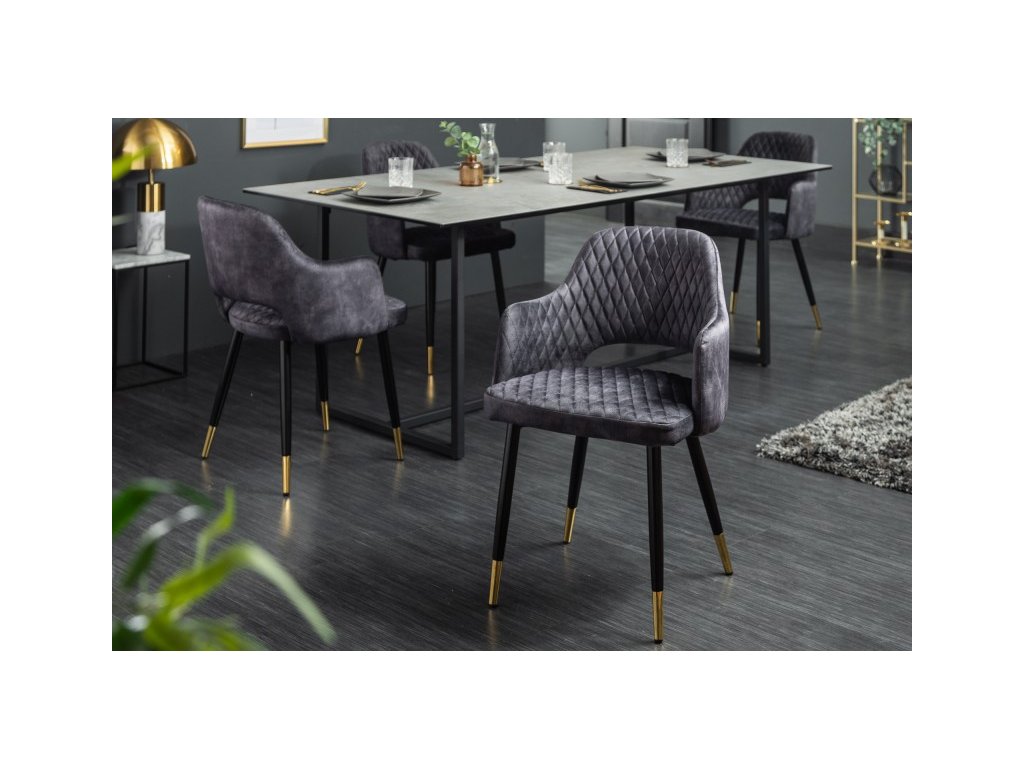 SET 2ks Šedá sametová židle Paris