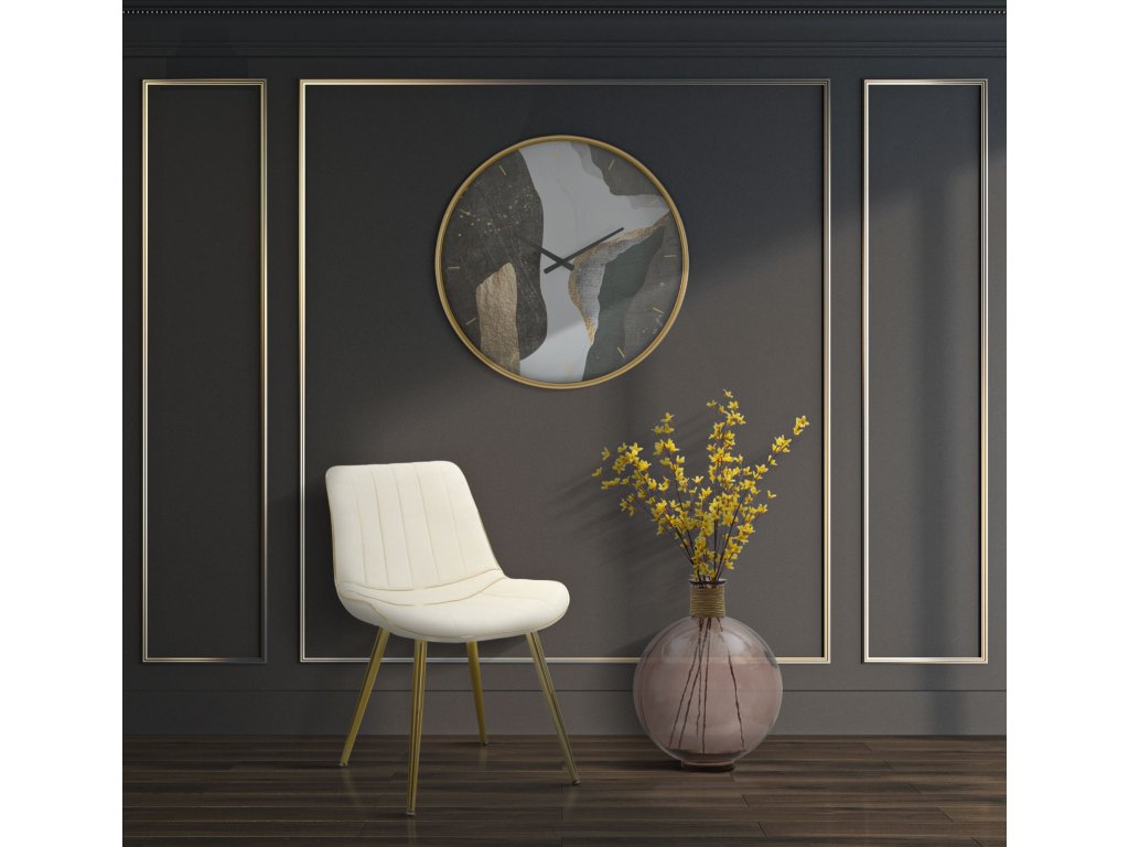 Set 2 ks židlí Ellen je vyroben z kovu zlaté barvy a borového dřeva, čalounění je kvalitní z umělého sametu (polyster). Jemné zlaté linie na prošívání a lemech dodává židlím naprosto úchvatný a luxusní vzhled. Nádherná ukázka designu, který zaujme naprosto v každém interiéru, od pracovny, přes komerční prostor až po jídelnu.