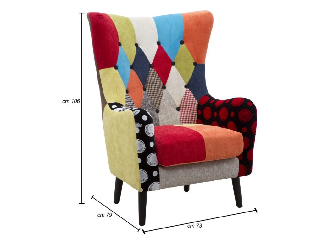 Křeslo Opero Big je vyrobeno z borovicového dřeva a kaučukového dřeva, čalouněno je kvalitní látkou ve stylu patchwork. Křeslo je ideální pro umístění v ložnici, obývacím pokoji či předsíni.