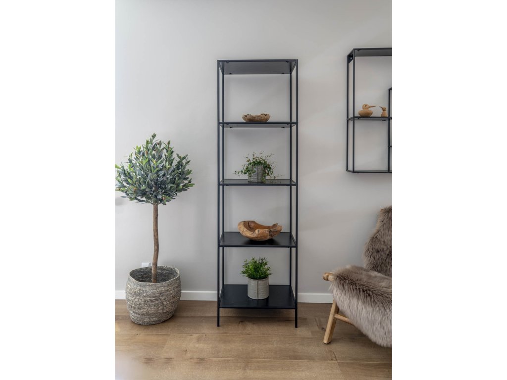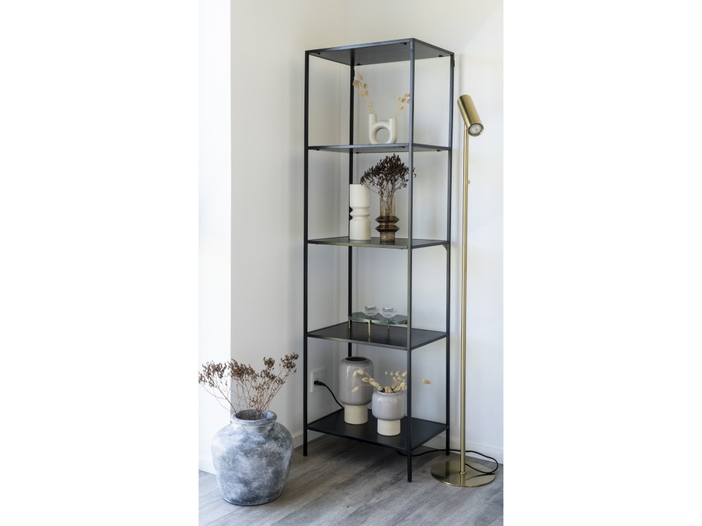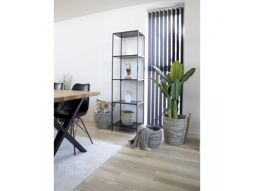 Regál Energy je součástí větší sady. Je vyroben z ocelového rámu černé barvy, deska je z dřevotřísky a melaminové fólie, která se vyznačuje odolností proti poškrábání a dostatečnou ochranou proti vlhkosti. Základem tohoto produktu jsou jednoduché, klasické linie. Regál má celkem 5 polic, které budou sloužit k uložení dekorací či udržení pořádku ve vašem interiéru.