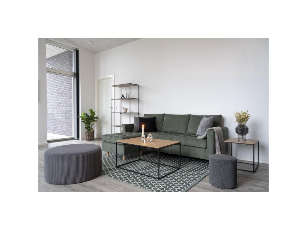 Konferenční stolek Energy je součástí větší sady. Je vyroben z ocelového rámu černé barvy, deska je z dřevotřísky a melaminové fólie v barvě dubového dřeva, která se vyznačuje odolností proti poškrábání a dostatečnou ochranou proti vlhkosti. Základem tohoto produktu jsou jednoduché, klasické linie.