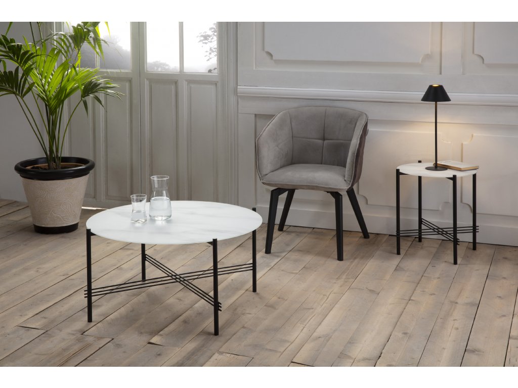 Konferenční stolek Kendall si Vás získá svoji jednoduchostí, ale elegancí zároveň. Jednoduchý koncept kovové podnože a desky ze skla s mramorovým efektem dělá z tohoto stolku nádherný kousek. Hodí se do více druhů interiéru. Dodejte své domácnosti novou jiskru!