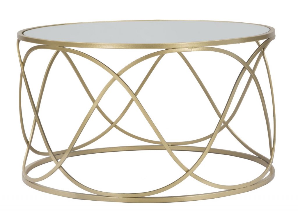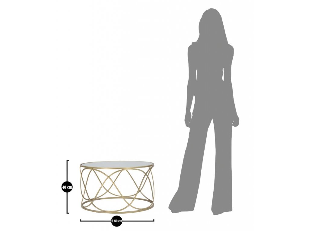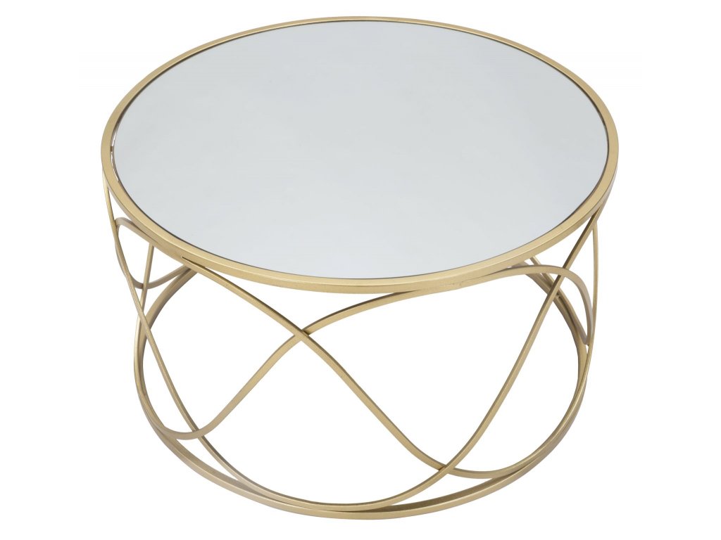 Elegantní kulatý konferenční stolek Latona se zlatou kovovou konstrukcí a zrcadlovou skleněnou deskou je nádherným prvkem do každého interiéru. Jemná a klikatá dekorace rámu dodá každé místnosti nádech luxusu a relaxace.
