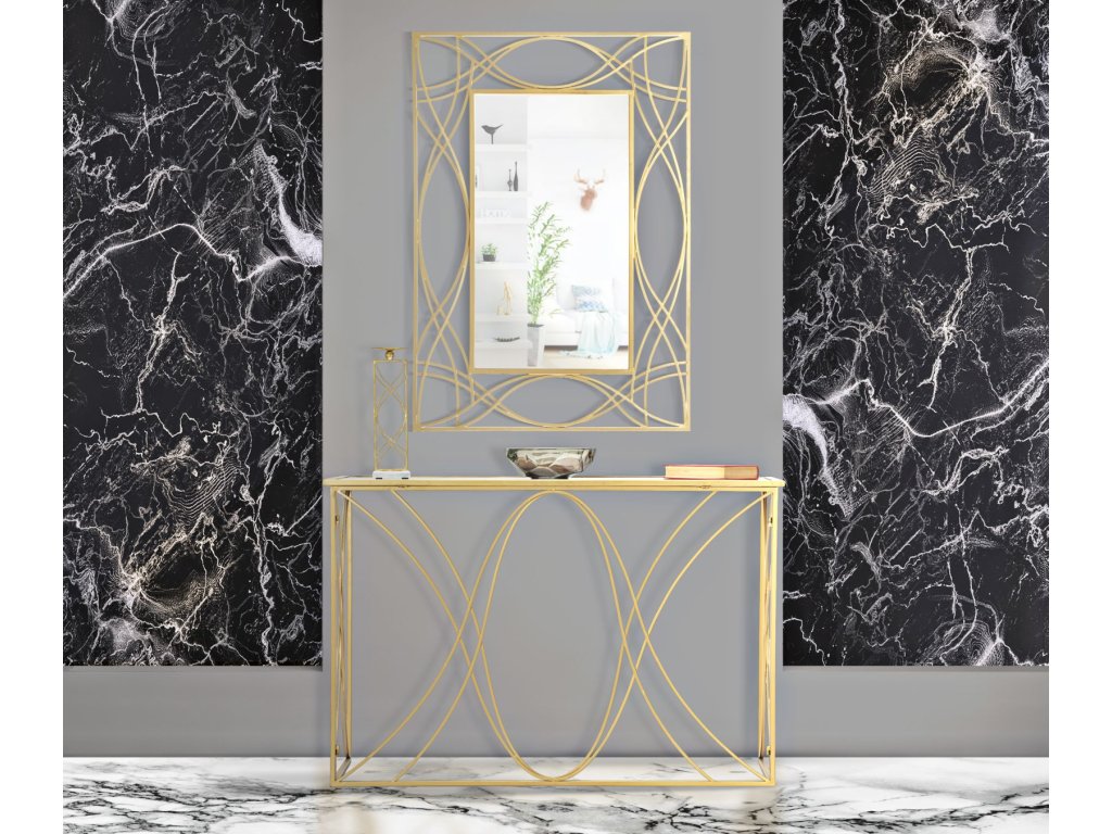 Konzolový stolek Mauro Ferretti Erkalo 120x40x80 cm, zlatá/stříbrná