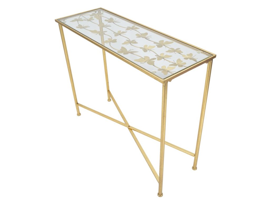 Zlatý konzolový stolek Mauro Ferretti Butterflies, 100x35x80 cm