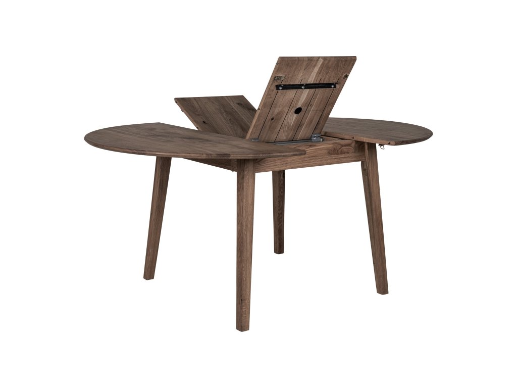 Jídelní stůl rozkládací kulatý Metz O118 cm, tmavý dub je novinkou dánského dodavatele House Nordic. Jídelní stůl má dubovou desku ošetřenou šetřenou přírodním olejem na uzený odstín. Stůl je možno rozložit na rozměr oválu 118x158 cm roztažením jídelní desky a instalací přídavné desky s motýlkovou funkcí (za běžného provozu je přídavná deska upevněna pod základní deskou, neuchovává se zvlášť). Výška stolu je 75,5 cm.