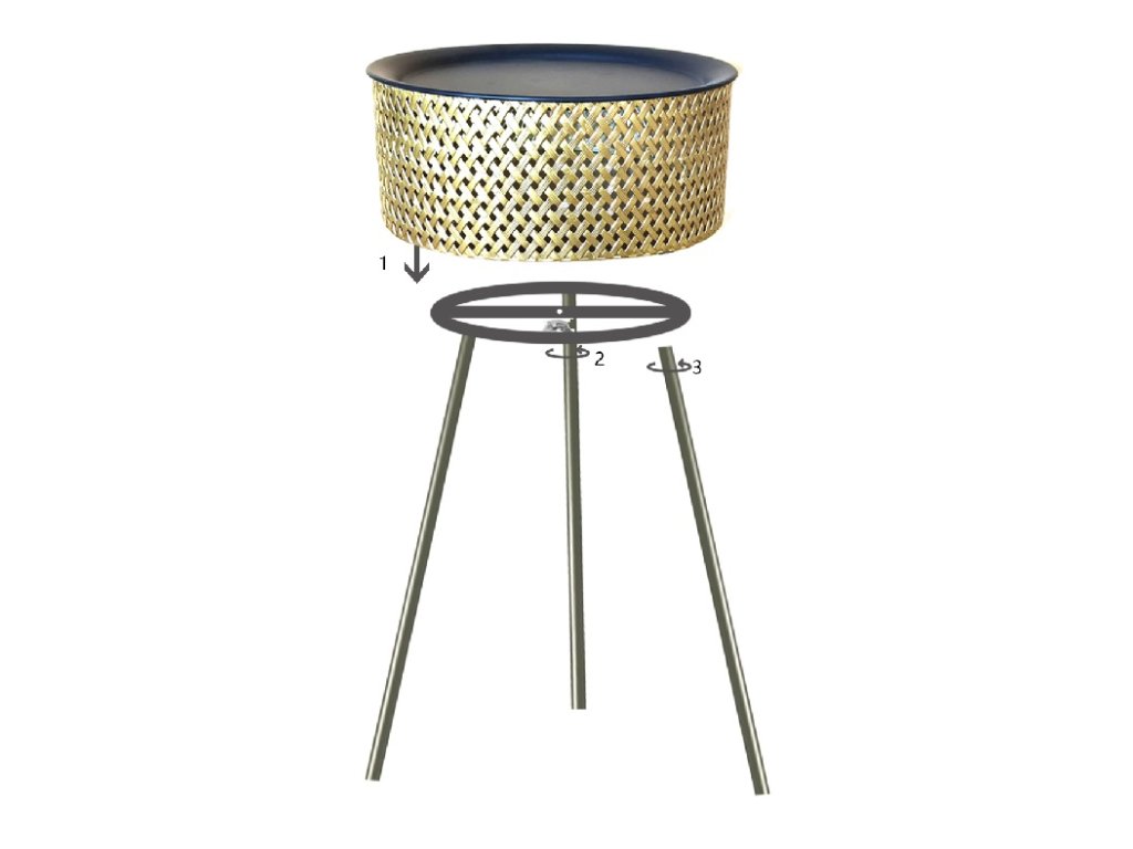 Malý kulatý odkládací stolek Helin je vyroben z černého kovu se zlatými nohami. Horní díl je jemně perforovaný, aby získal nádech elegance. Vršek je odnímatelný, uvnitř tak naleznere praktický úložný prostor.