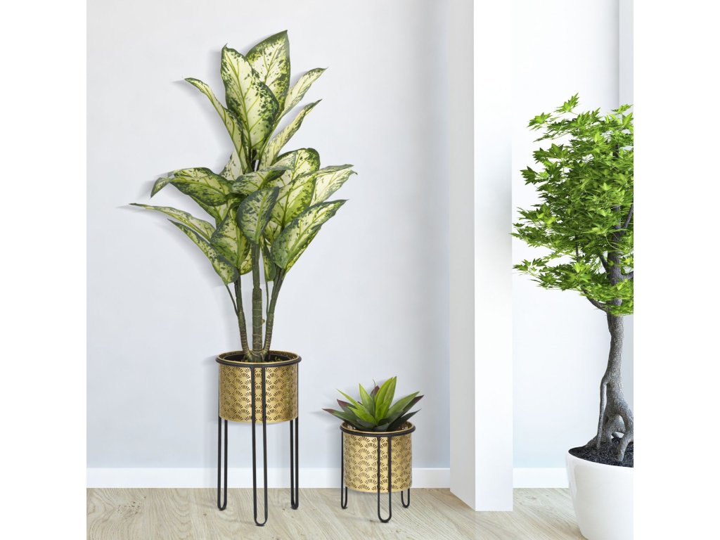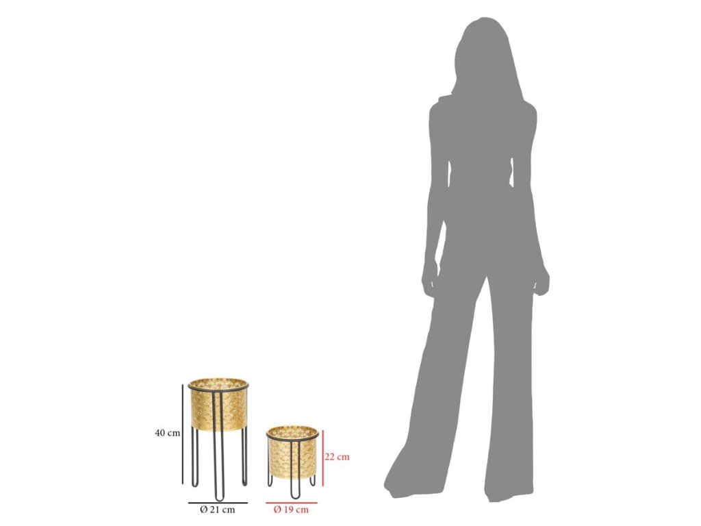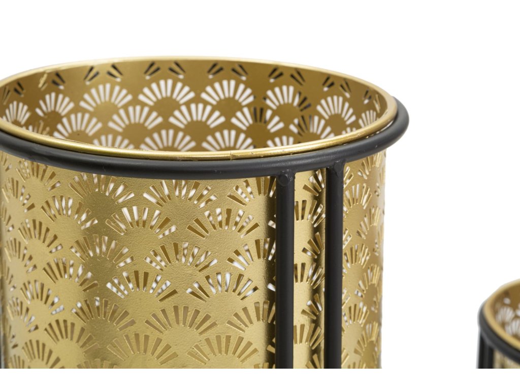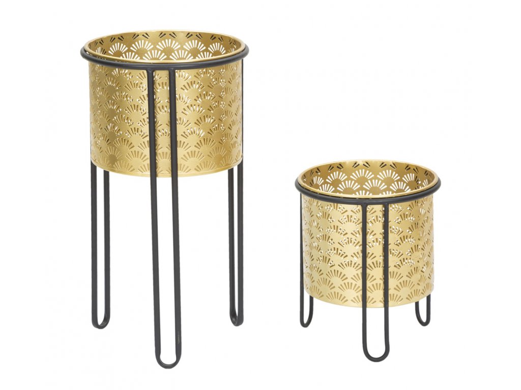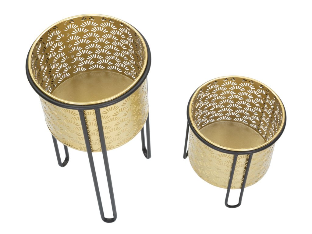 Set 2 kusů stojanů na květináče Velavi B je vyroben z kovu zlaté a černé barvy. Mísy jsou odnímatelné, perforované nádhernými ornamenty. Nádherný doplněk do domácnosti i do komerčního interiéru.