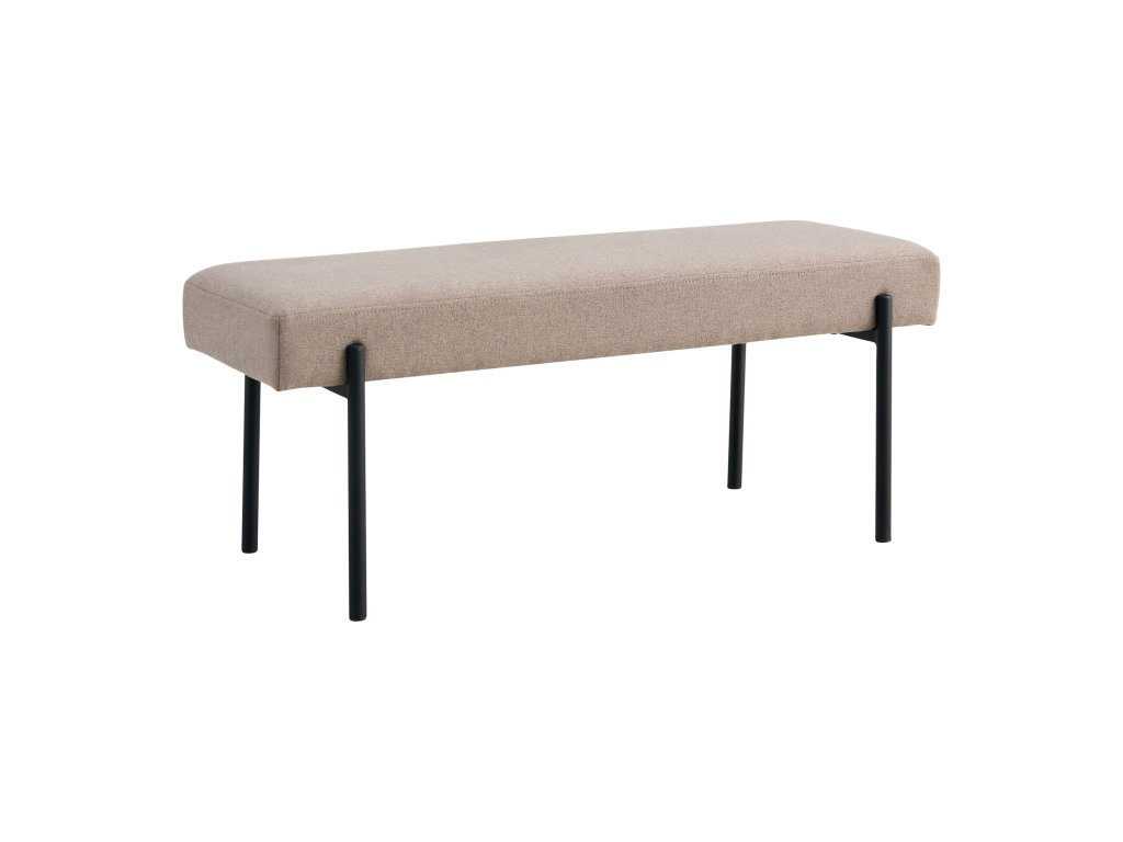 Lavice Swindon Bank je čalouněná do potahu z béžového polyesteru. Lavice neboli velký taburet, který stojí na černých úzkých elegantních nožkách, je vhodný jako solitér do ložnice, obývacího pokoje nebo předsíně. Lavice je od skandinávského dodavatele House Nordic.