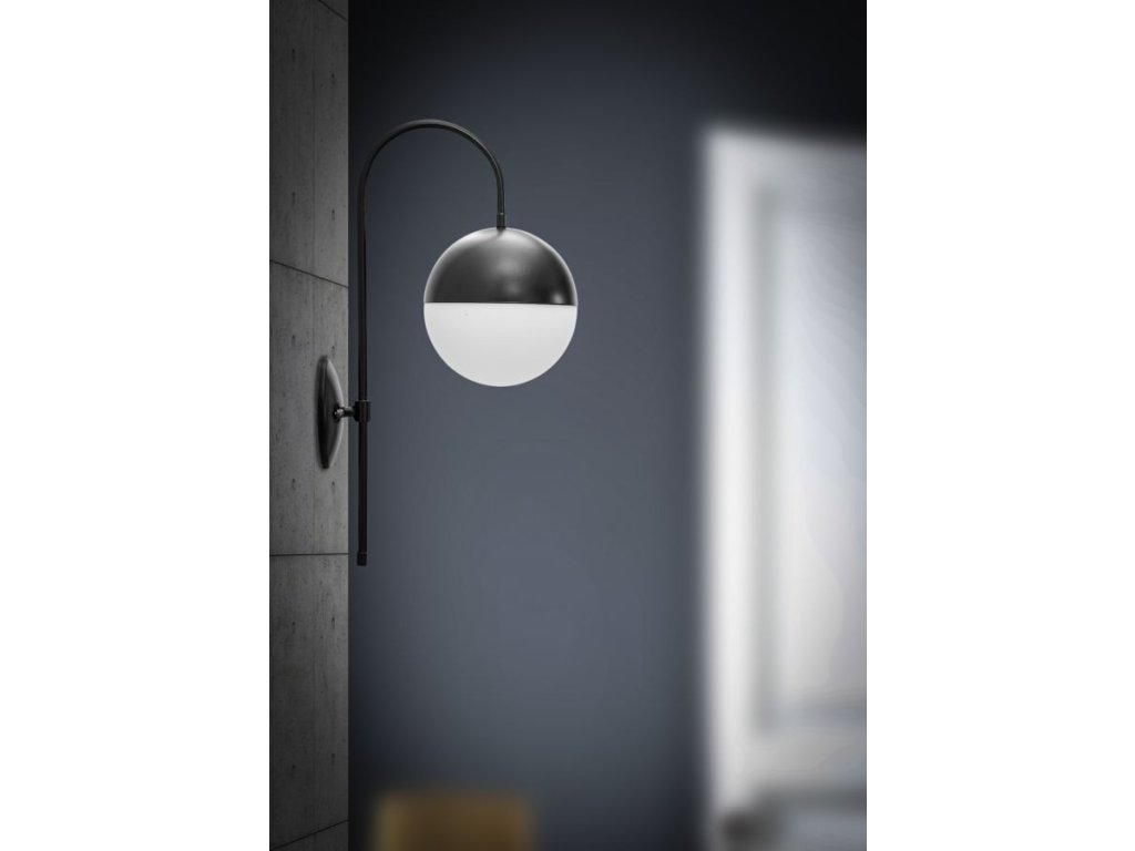Nástěnné svítidlo Bow je vyrobeno z černého kovu a bílého neprůhledného skla. Základní linie a zvláštní design se snoubí s elegancí černé barvy a vytvářejí jedinečnou kombinaci.