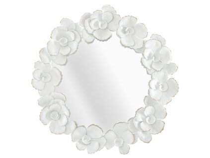 Kulaté zrcadlo z bílého kovu s elegantními dekorativními motýly. Zrcadla jsou základním prvkem, který dodává na půvabné atmosféře. Opticky rozšiřují prostory a vytvářejí příjemný pocit v interiéru.
