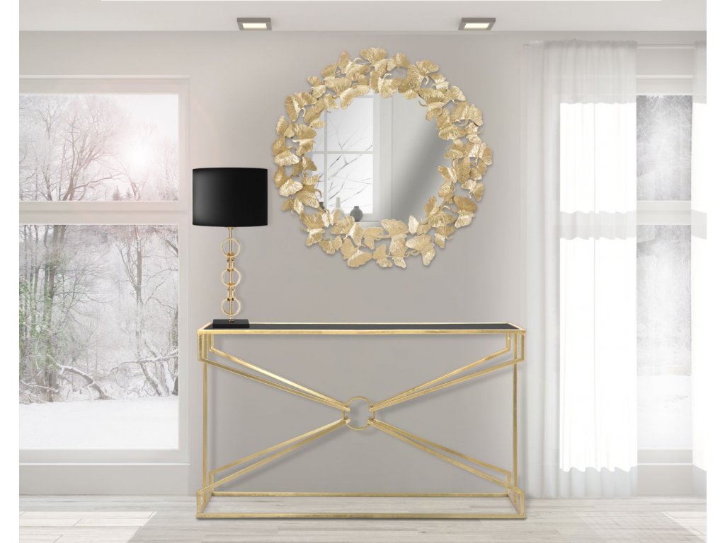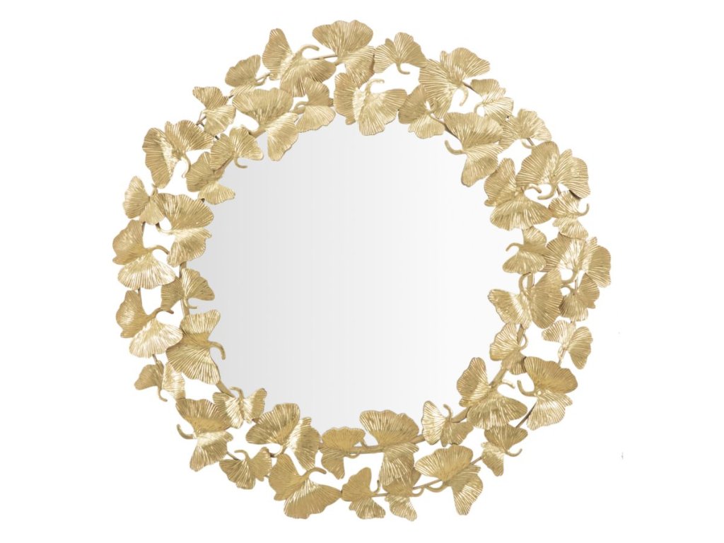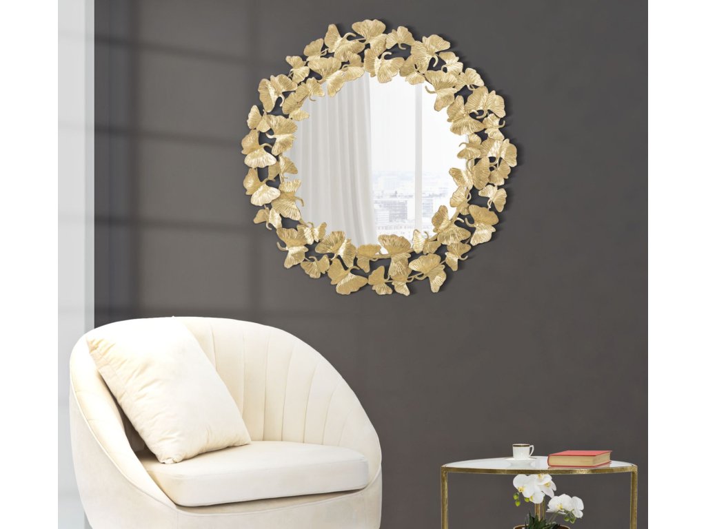 Nástěnné zrcadlo Veridas má nádherný zlatý železný rám složený z lístků, středová část je z materiálu MDF. Zrcadlo dodá vašemu domovu osobní dotek a vizuálně zvětší prostory.