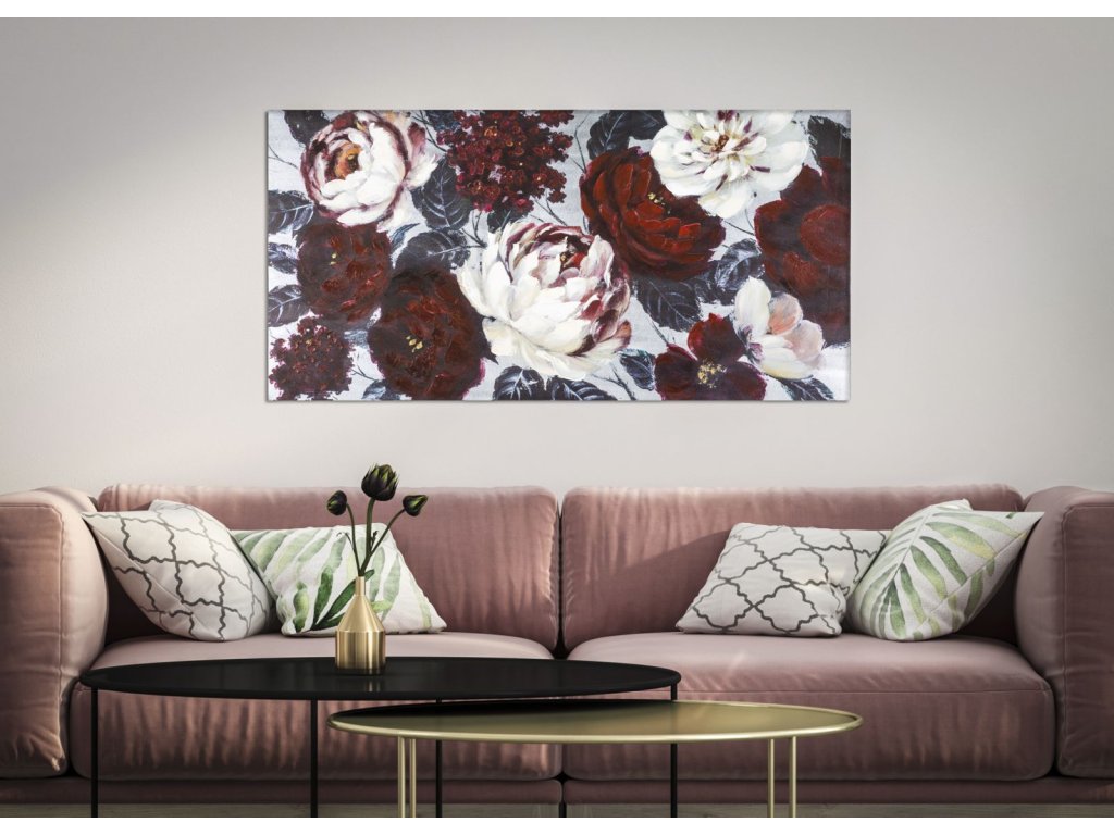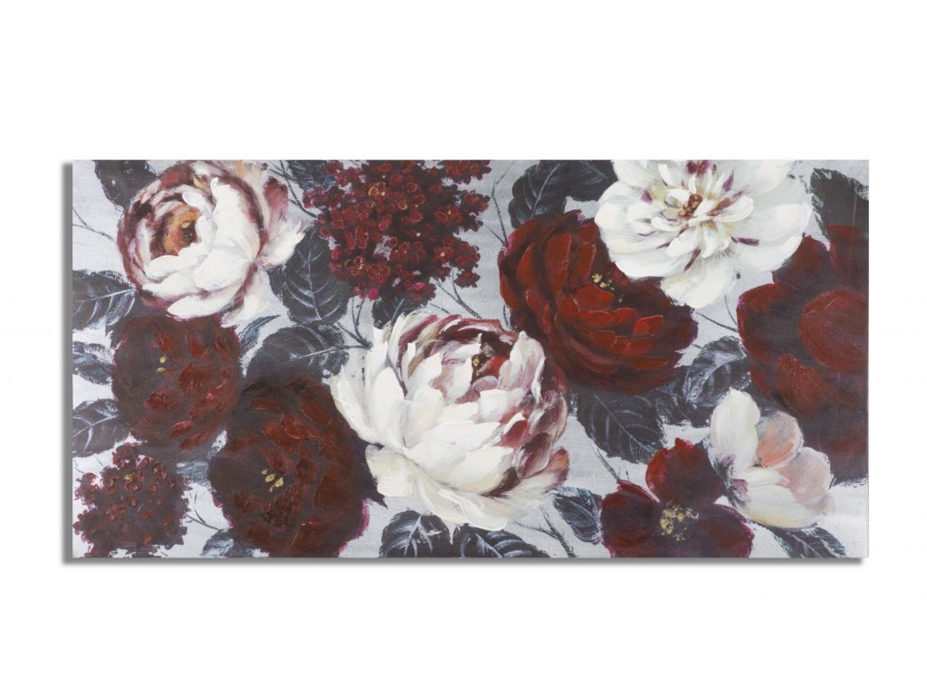 Nádherný, ručně malovaný obraz Blossom A zobrazuje nádherné květiny. Je malován na plátně (canvas) s dřevěným rámem z borového dřeva. Do vašeho interéru přinese jemnost a krásu.
