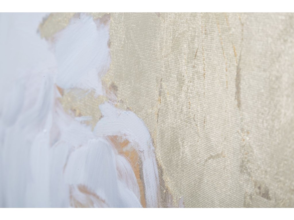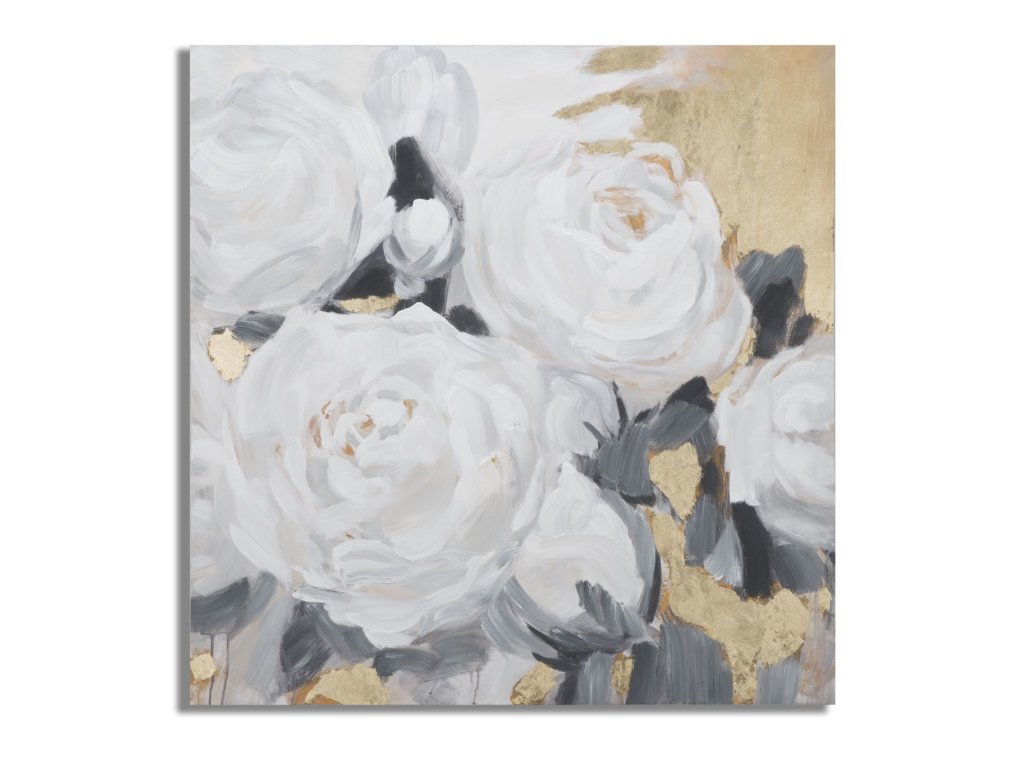 Nádherný, ručně malovaný obraz Elvas A zobrazuje několik bílých květů. Je malován na plátně (canvas) s dřevěným rámem z borového dřeva. Do vašeho interéru přinese jemnost a krásu.