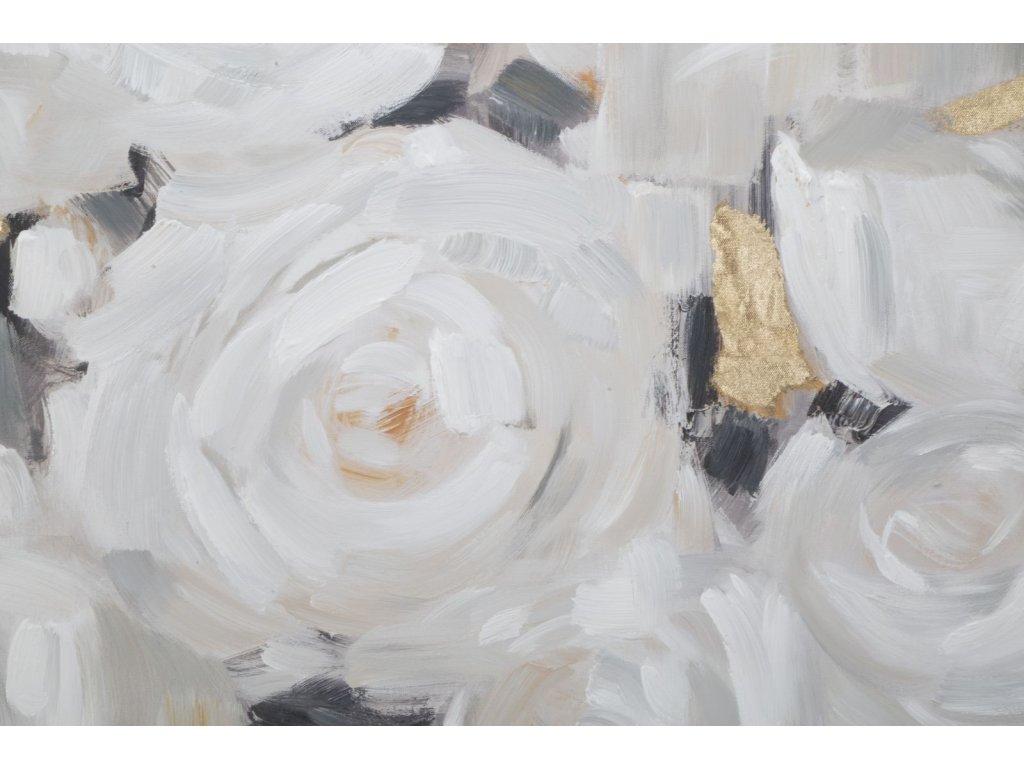 Nádherný, ručně malovaný obraz Elvas B zobrazuje několik bílých květů. Je malován na plátně (canvas) s dřevěným rámem z borového dřeva. Do vašeho interéru přinese jemnost a krásu.