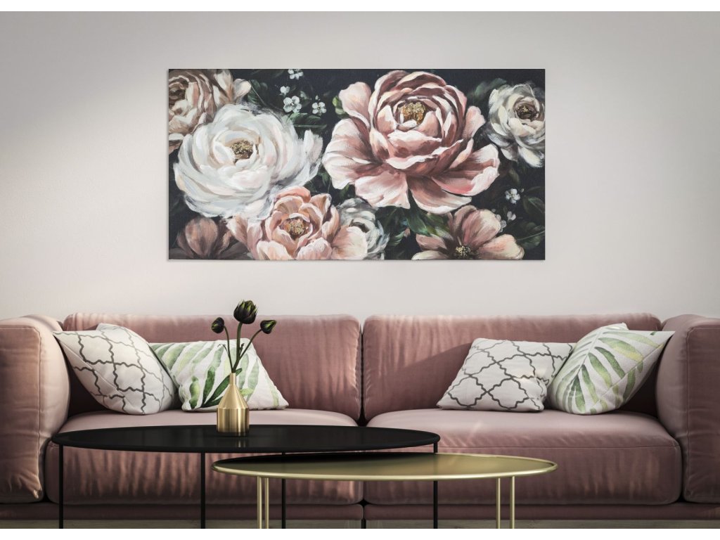 Nádherný, ručně malovaný obraz Flowy B zobrazuje nádherné květiny. Je malován na plátně (canvas) s dřevěným rámem z borového dřeva. Do vašeho interéru přinese jemnost a krásu.