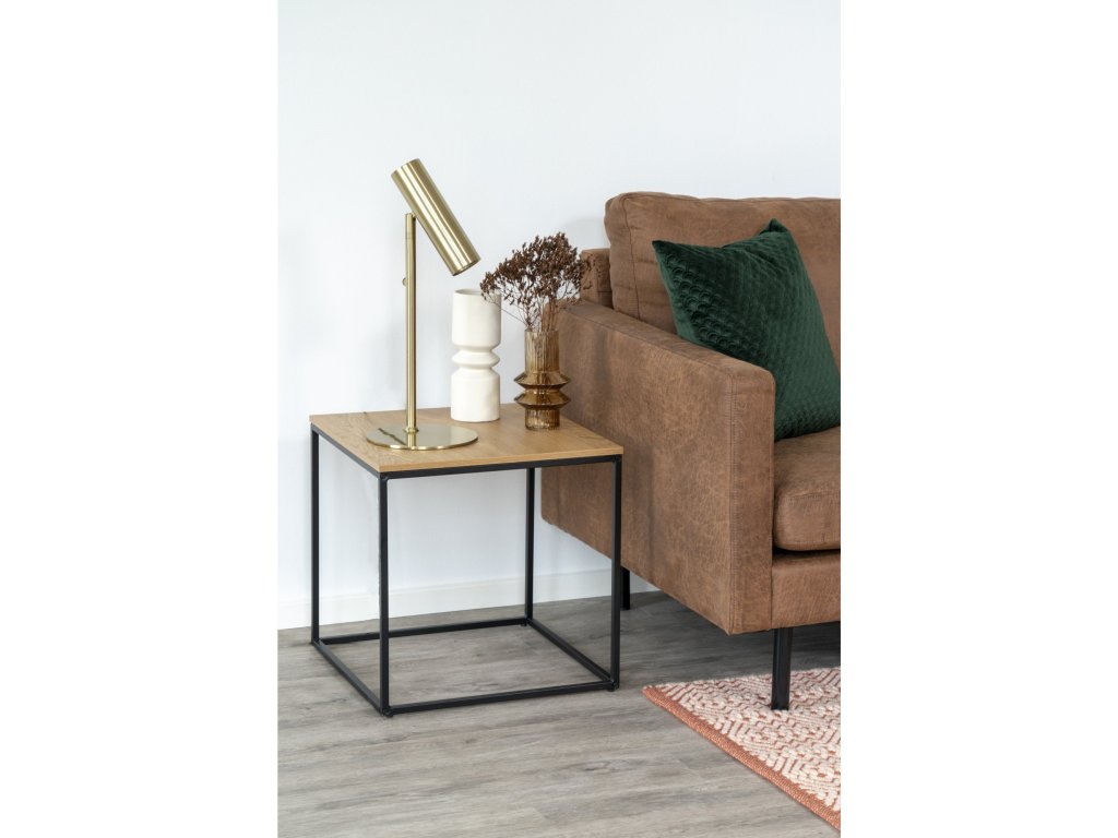 Odkládací stolek Energy je součástí větší sady. Je vyroben z ocelového rámu černé barvy, deska je z dřevotřísky a melaminové fólie v barvě dubového dřeva, která se vyznačuje odolností proti poškrábání a dostatečnou ochranou proti vlhkosti. Základem tohoto produktu jsou jednoduché, klasické linie.