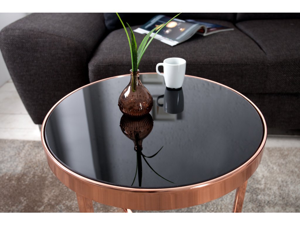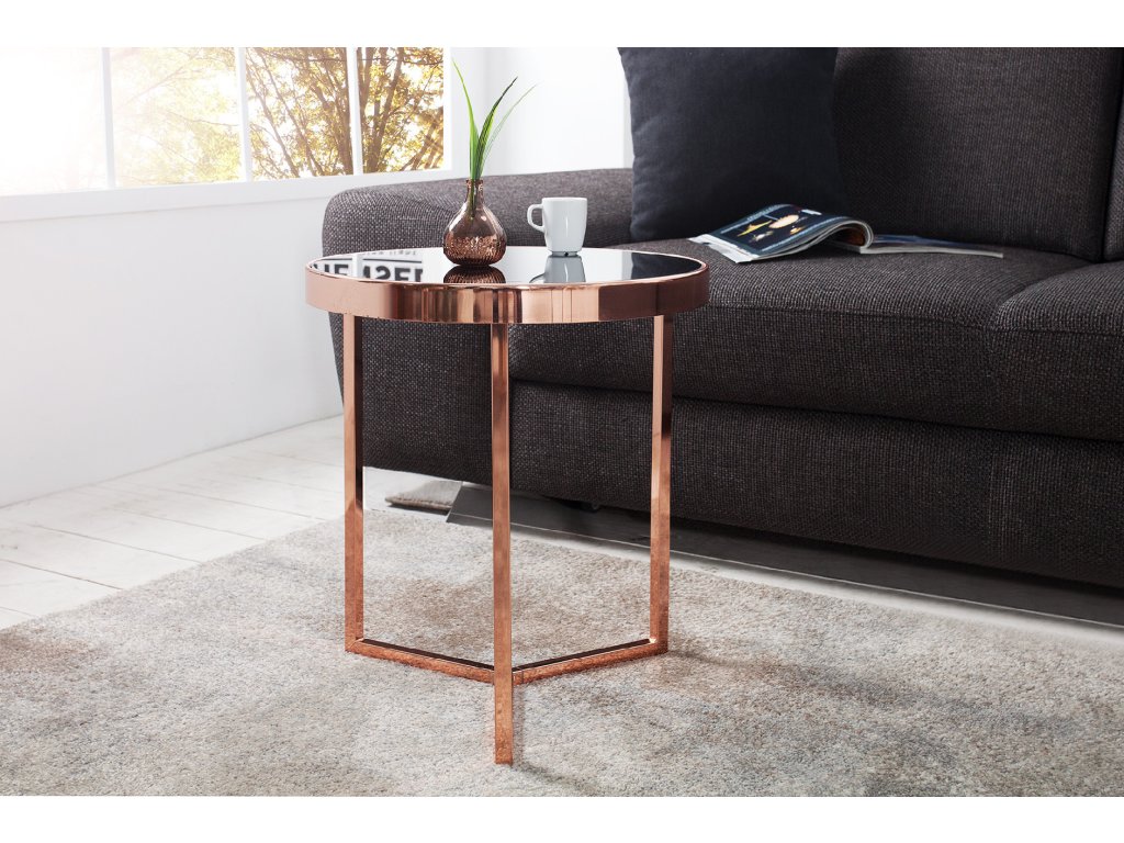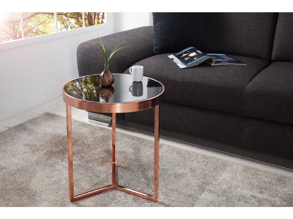 Odkládací stolek Lomban II, měď, černé sklo