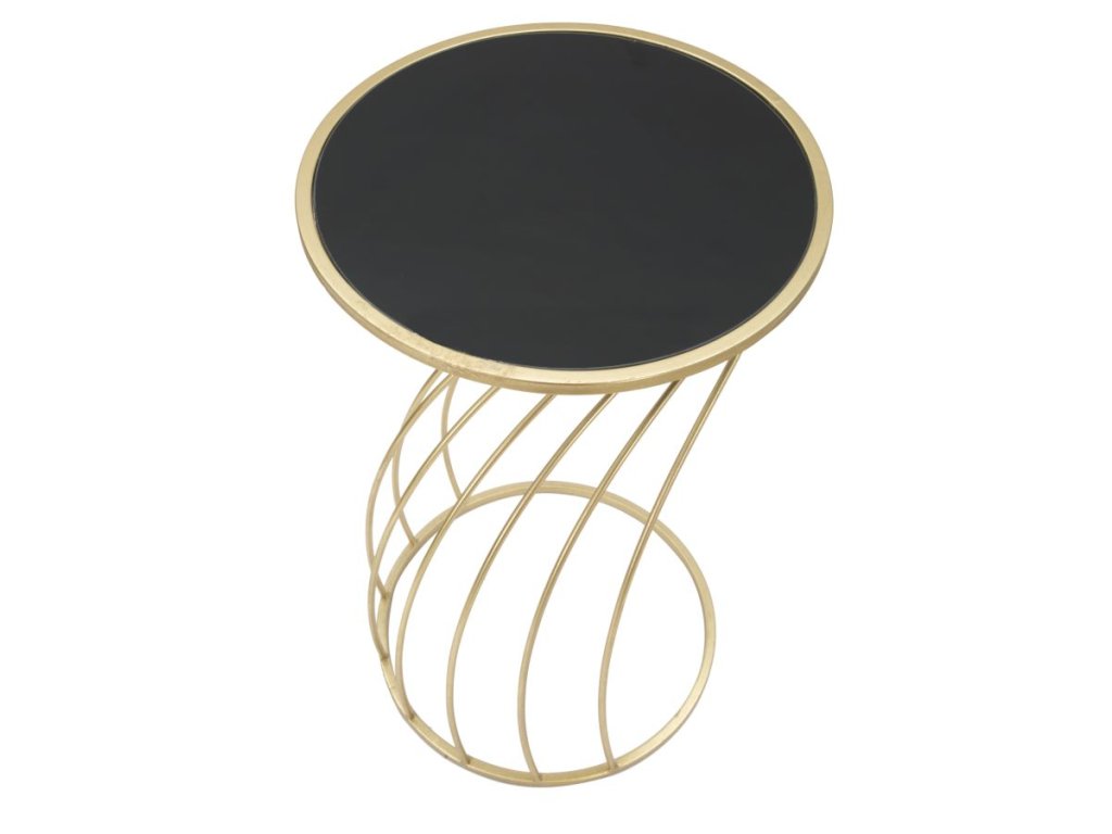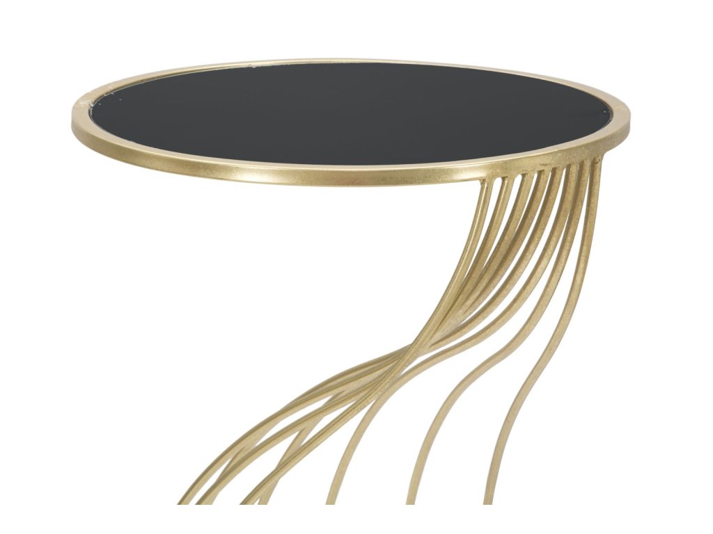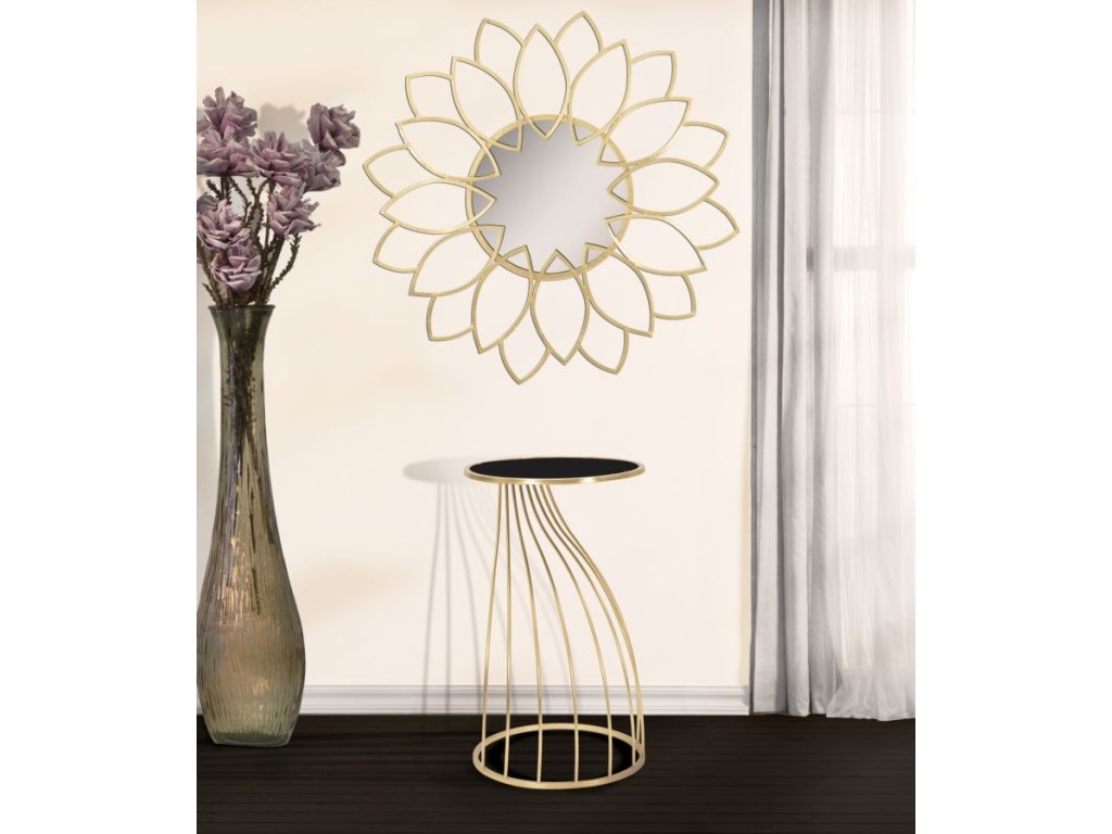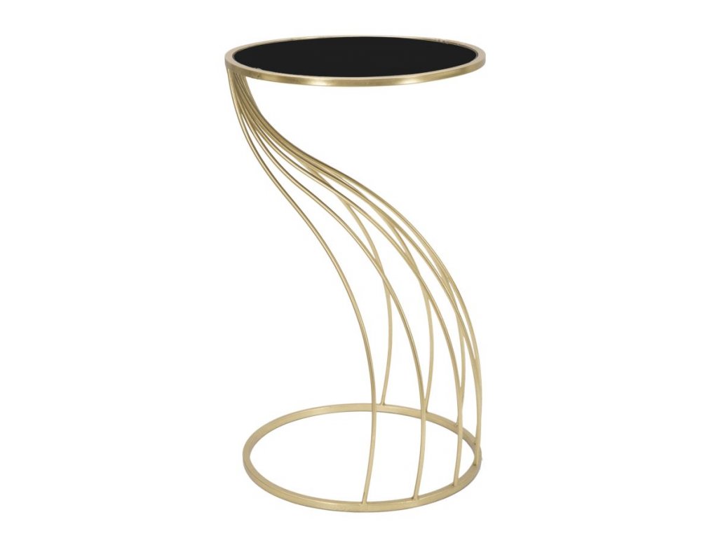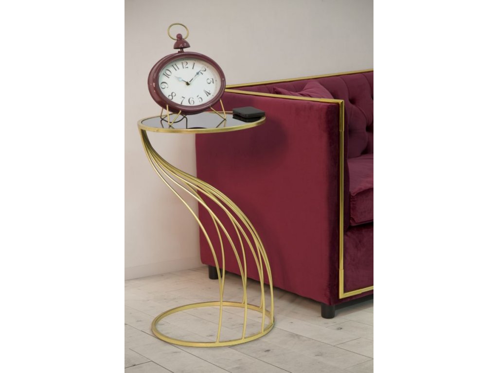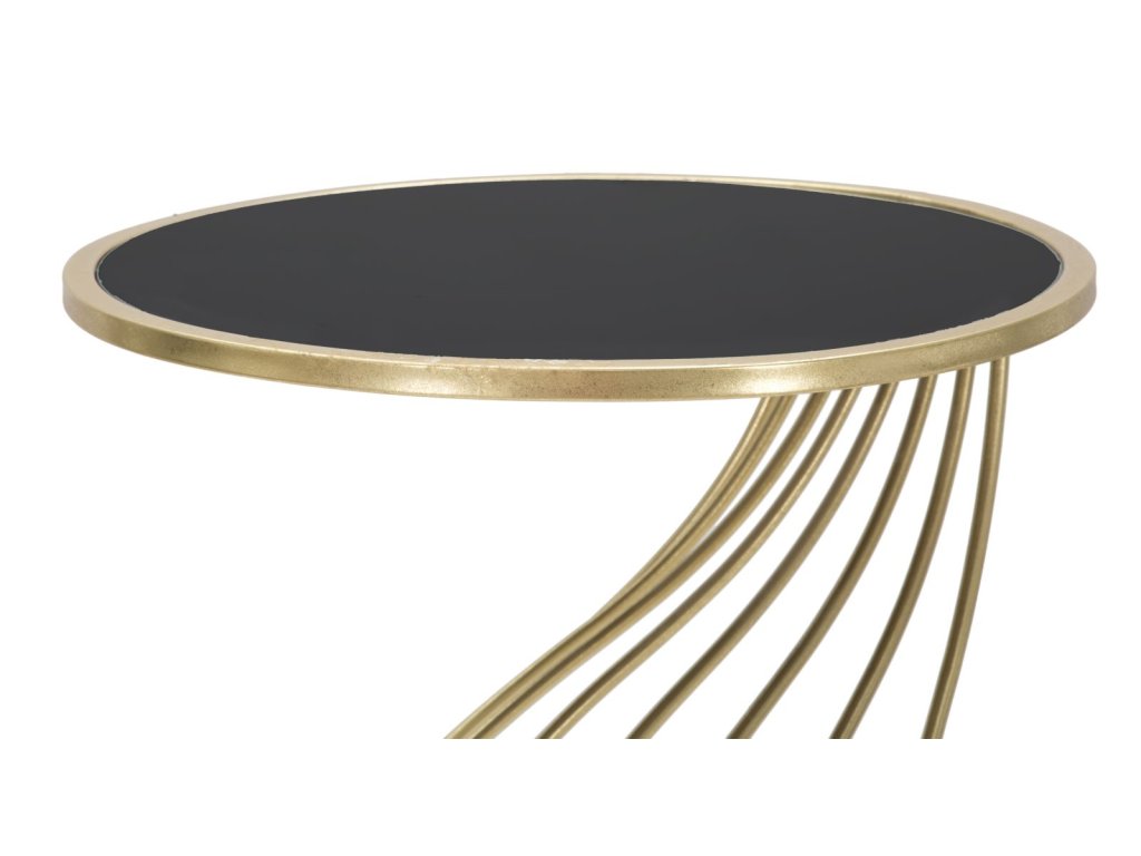 Odkládací stolek na telefon Ganeto M má nádherný zlatý kovový rám s vlnitými a podmanivými liniemi, deska je z MDF a zrcadlového skla. Zlatá v kombinaci s černou vytváří silný dojem. Luxusní glam prvek pro váš domov.