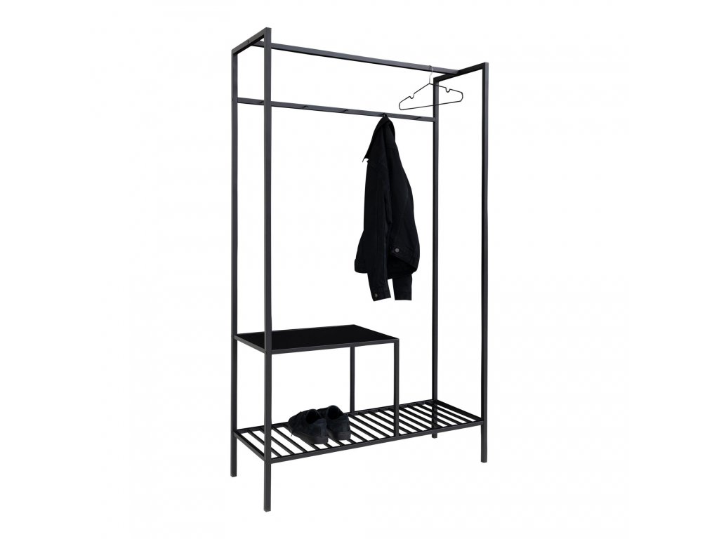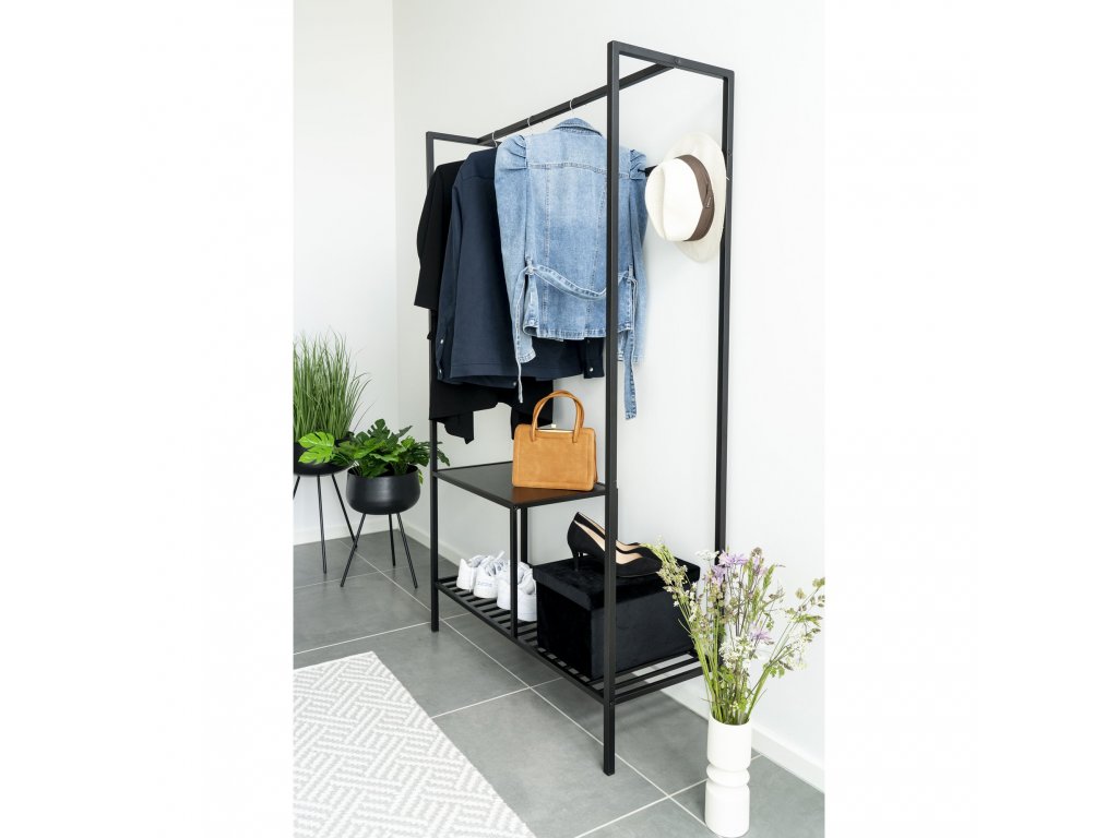 Věšák Energy je součástí větší sady. Je vyroben z ocelového rámu černé barvy, odkládací deska je z dřevotřísky a melaminové fólie, která se vyznačuje odolností proti poškrábání a dostatečnou ochranou proti vlhkosti. V dolní části lze odložit boty či boxy na uložení potřebných drobností. Základem tohoto produktu jsou jednoduché, klasické linie.