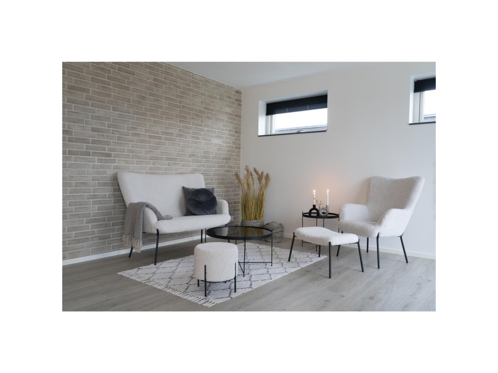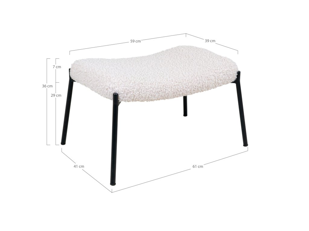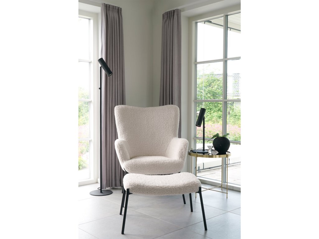 Podnožka Armat je čalouněna vysoce kvalitní umělou jehněčí vlnou bílé barvy. Kostra je vyrobena z borovicového dřeva, nohy jsou černé, kovové. Bude výborně ladit v sadě s křeslem a je skutečně krásnou ukázkou severského designu a kvality.