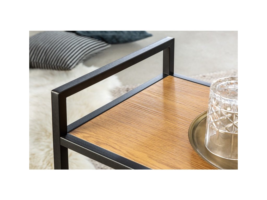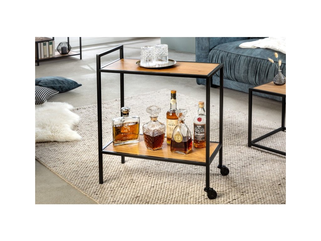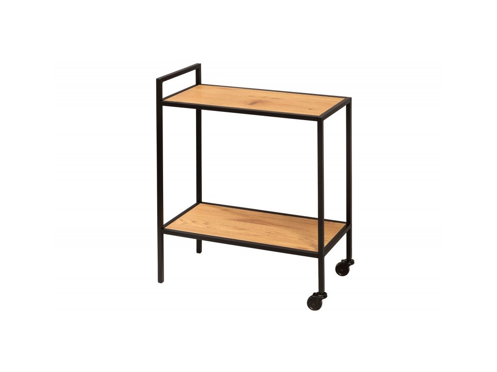 Servírovací stolek Slim Line je vyroben z kovového rámu černé barvy, deska je z lakovaného dřeva ve vzhledu divokého dubu. Základem tohoto produktu jsou jednoduché, klasické linie.