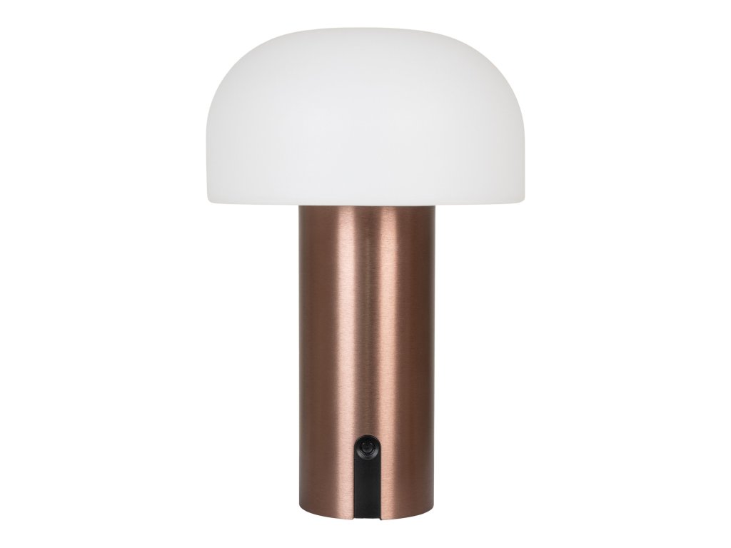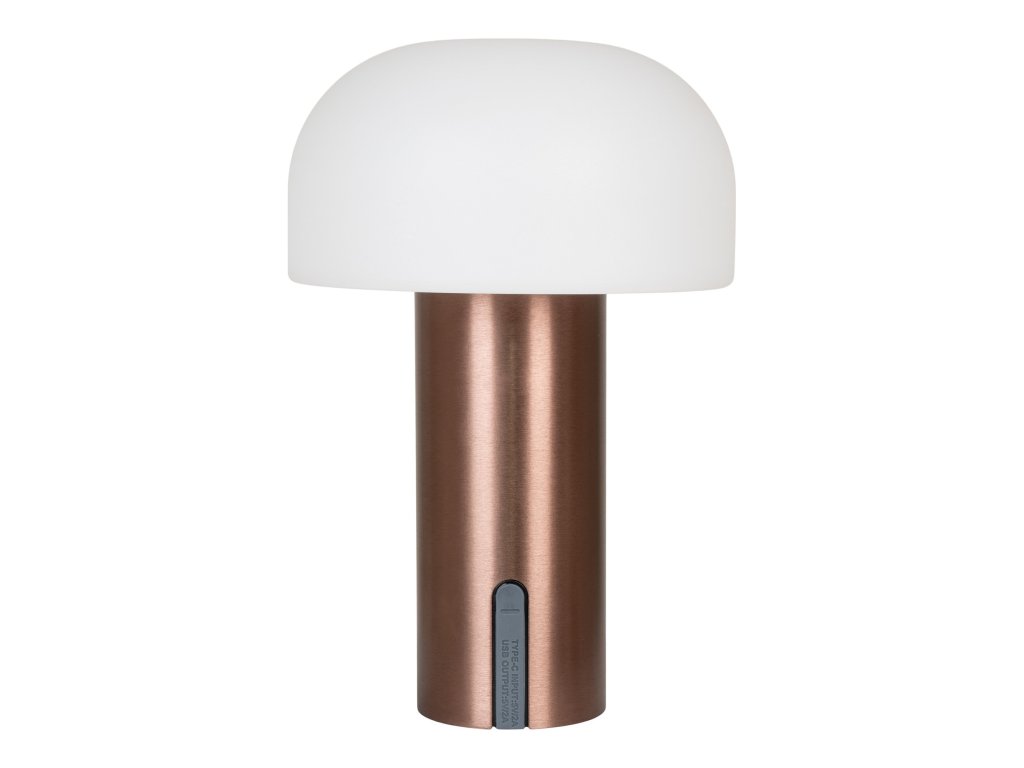 LED lampička Soham stolní je vyrobena v kombinaci bílého stínidla a nohy v měděné barvě. Součástí je dobíjecí USB kabel 1,2 metru. Součástí lampy je dobíjecí stanice pro USB telefon nebo tablet, se silikonovou vodotěsnou zátkou pro venkovní použití. Zapínání a stmívání je dotykové na boční straně nohy. LED lampička se stane dobrým společníkem při posezení s rodinou či přáteli na terase nebo na zahradě.