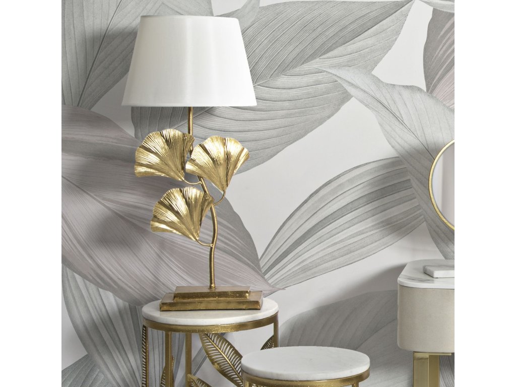 Stolní lampa Ertemos je vyrobena z kovu zlaté barvy a bílého stínítka z látky v jedinečném GLAM stylu, který vás naprosto uchvátí. Hlavním prvkem celého svítidla jsou přírodní motivy. Je ideální volbou pro elegantní a všestranné interiéry a skvěle se hodí do chodby či předsíně.
