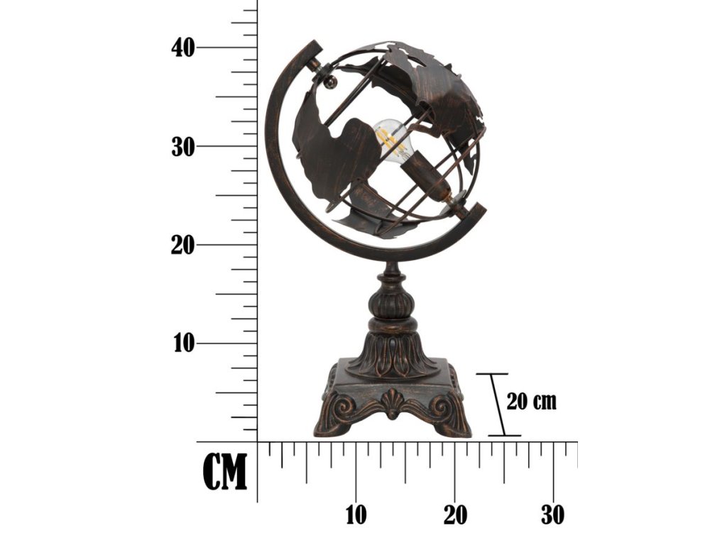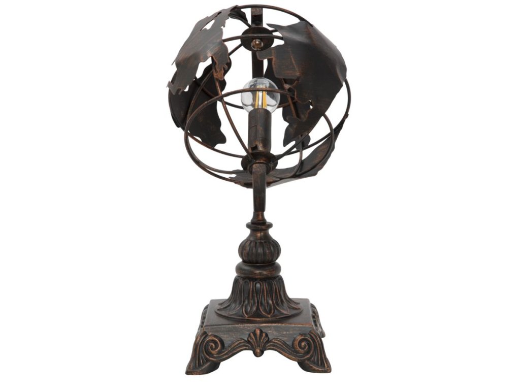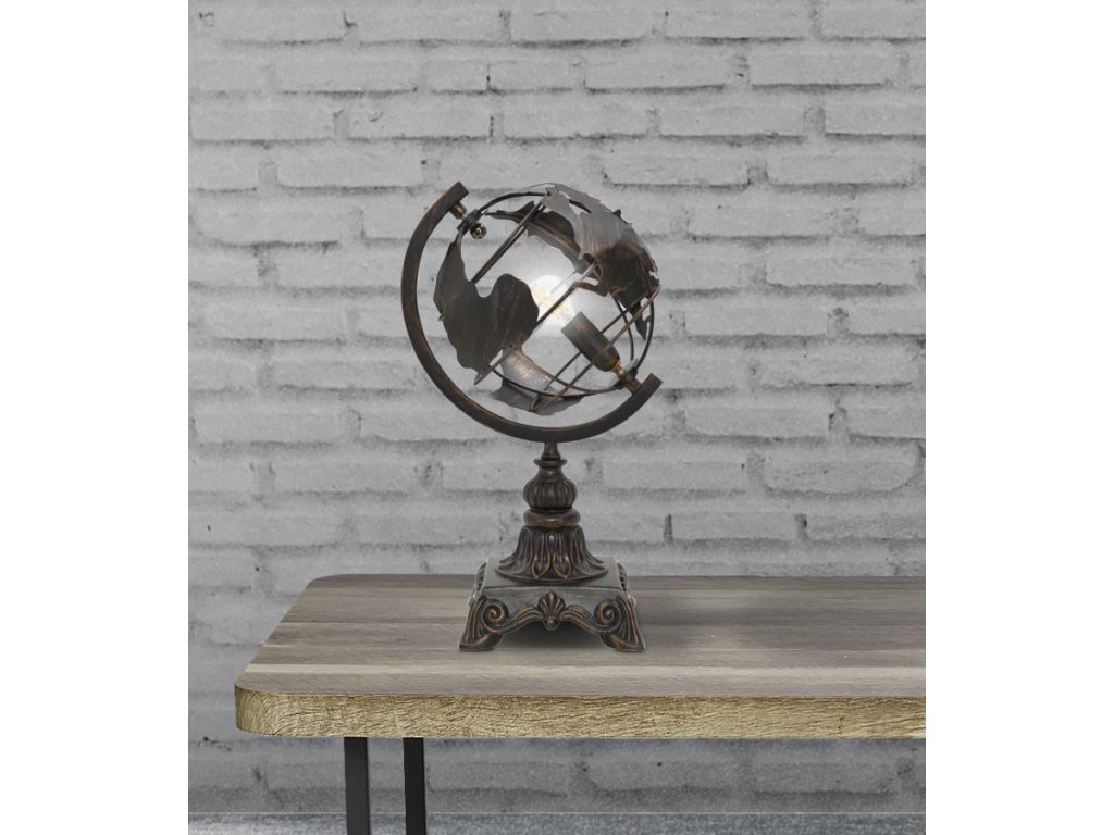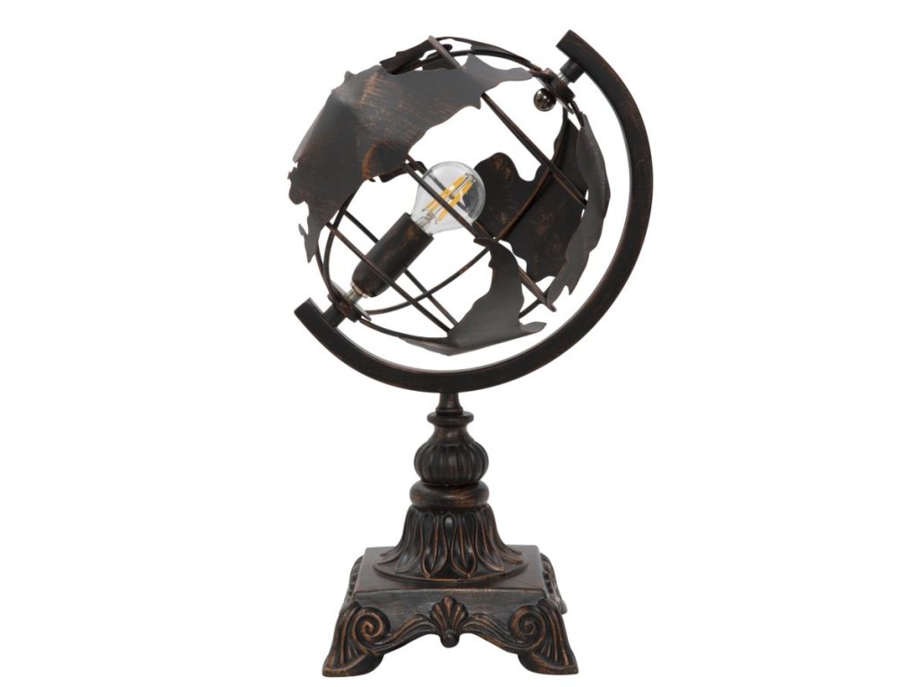 Stolní lampa Globe je vyrobena z kovu se specifickou, omšelou úpravou. Je vyrobena v kosmopolitním stylu ve stylu zeměkoule. Její tvar a vzhled nádherně doplní Váš interiér a stane se jeho nedílnou a oblíbenou součástí.