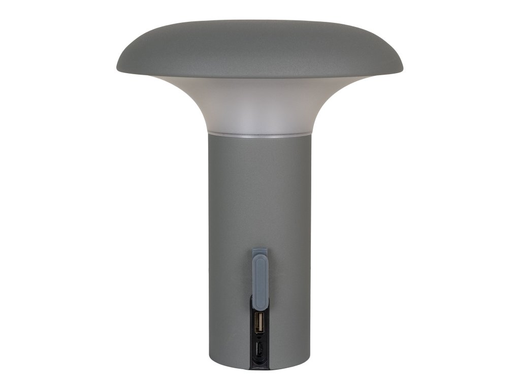 LED lampička Ramsey stolní je vyrobena v šedém polypropylenu. Součástí je dobíjecí USB kabel 1,2 metru. Součástí lampy je dobíjecí stanice pro USB telefon nebo tablet, se silikonovou vodotěsnou zátkou pro venkovní použití. Zapínání a stmívání je dotykové na boční straně nohy. LED lampička RAMSEY se stane dobrým společníkem při posezení s rodinou či přáteli na terase nebo na zahradě.