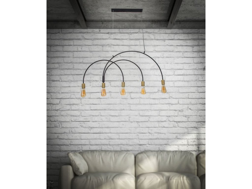 Závěsné svítidlo Utus je vyrobeno ze kovu černé barvy. Má celkem pět světelných zdrojů, které poskytnou příjemné osvětelní interiéru. Svítidlo je velmi minimalistické a tvoří jej jeden větší a dva menší oblouky, na jejich koncích jsou umístěny světelné zdroje.