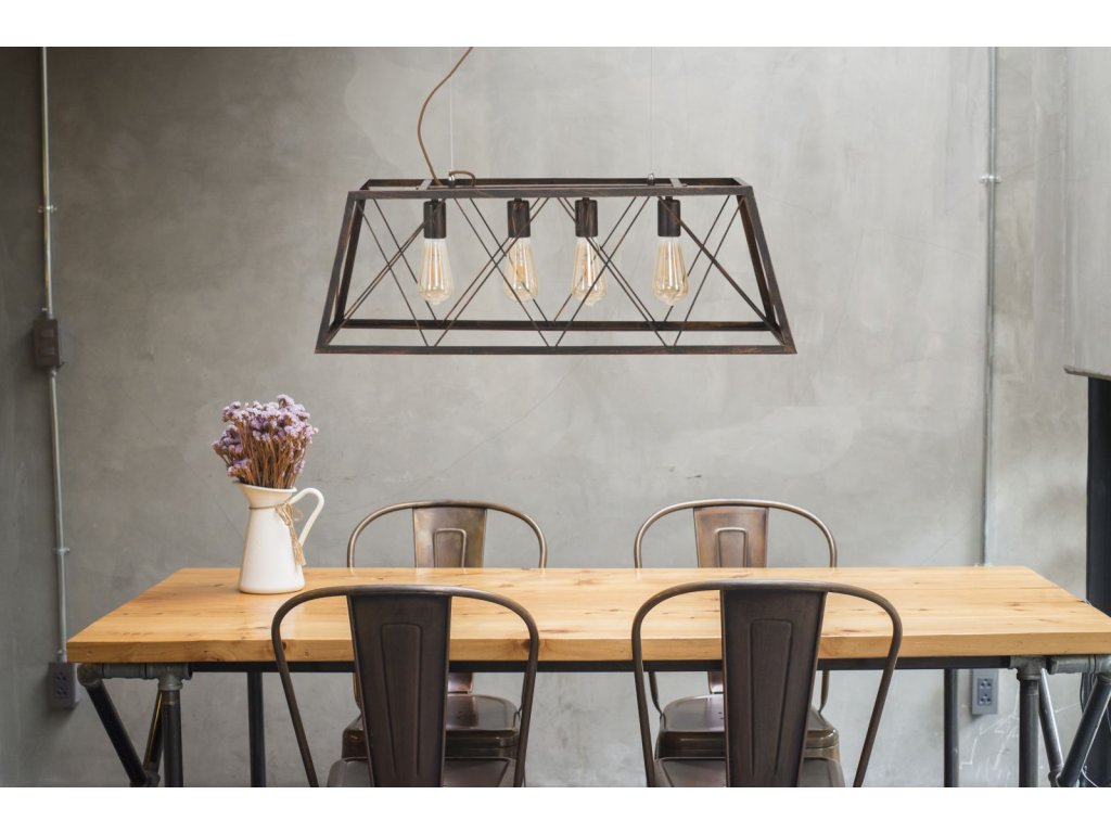 Závěsné svítidlo Wariano je vyrobeno z kovu se specifickou, omšelou úpravou. Obsahuje celkem 4 žárovky, které tak dodají interiéru dostatek světla. Je vyrobeno v pravém, industriálním stylu a proto patří mezi celkové bestellery. Jeho tvar a vzhled je velmi prakticky a nádherně doplní Váš interiér a stane se jeho nedílnou a oblíbenou součástí.