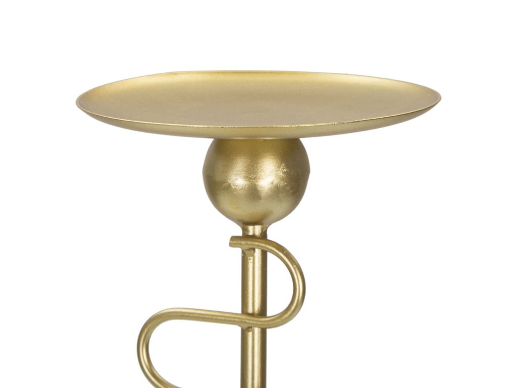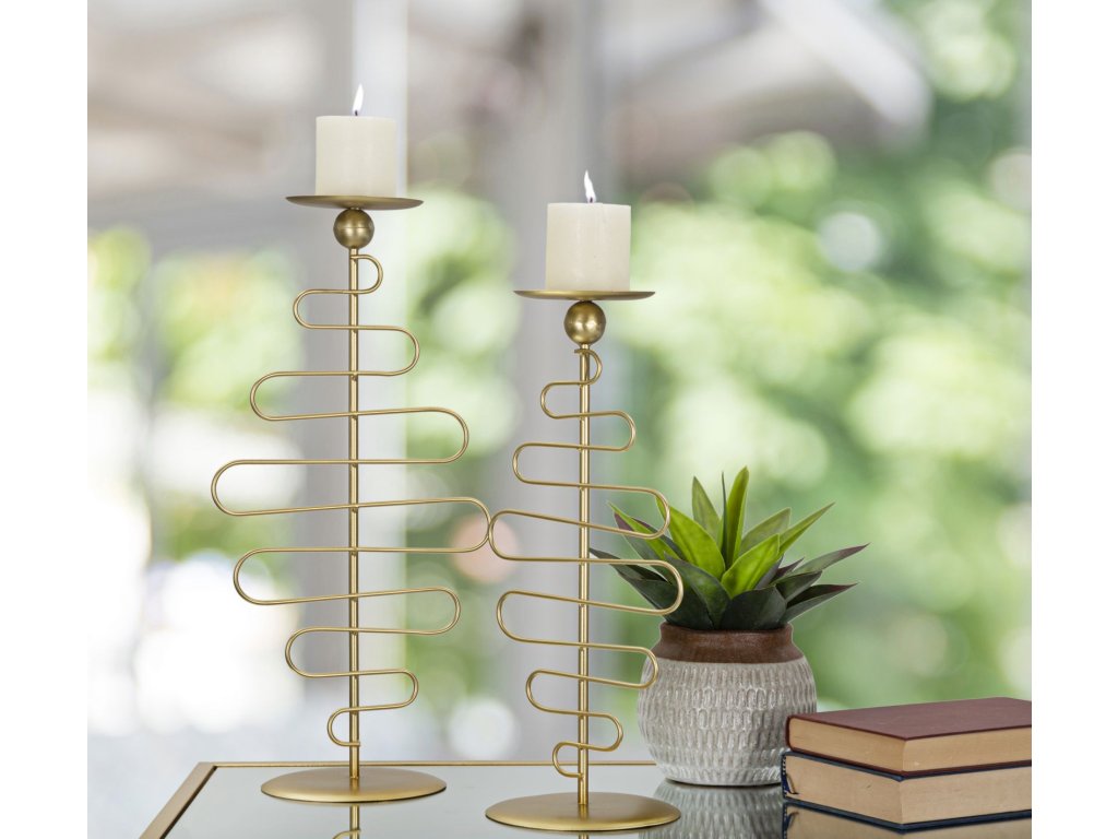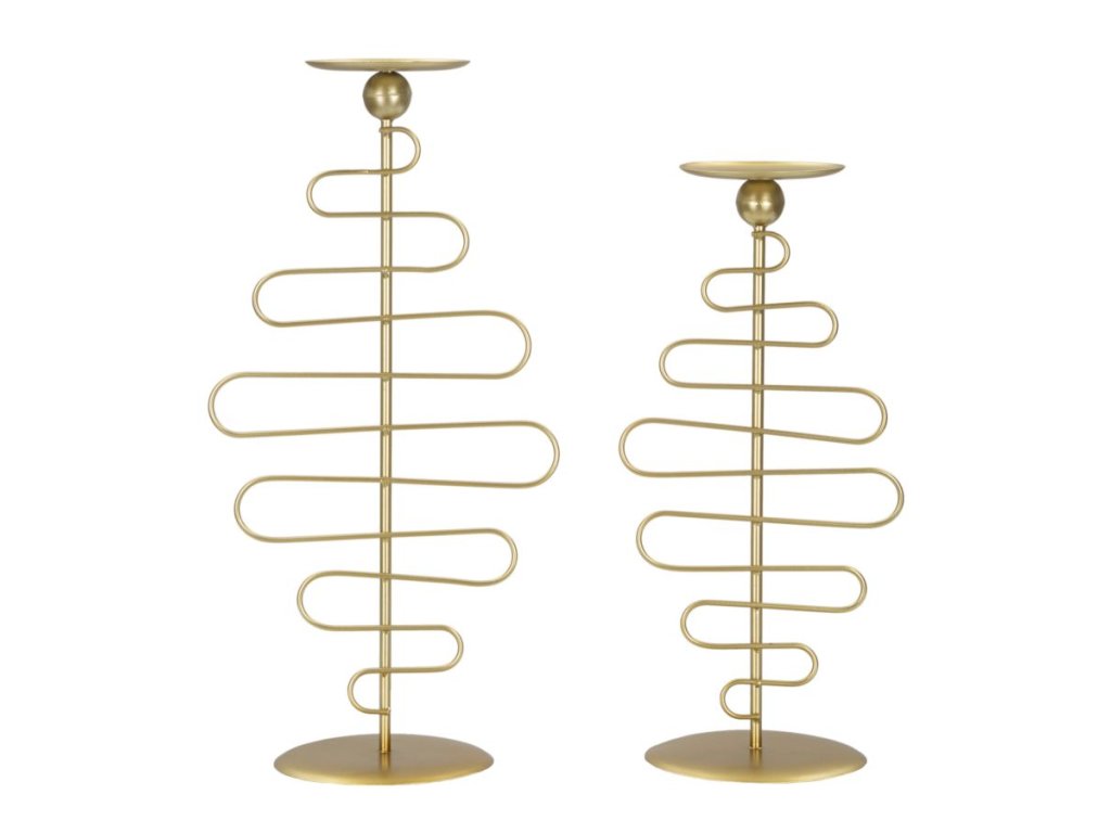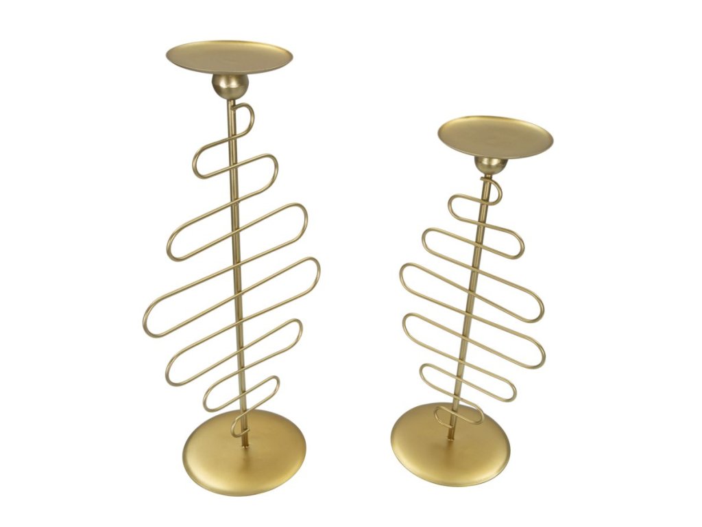Set 2 ks zlatých kovových svícnů Albora se vyznačuje jednoduchými, měkkými a klikatými liniemi. Každý je jinak vysoký.