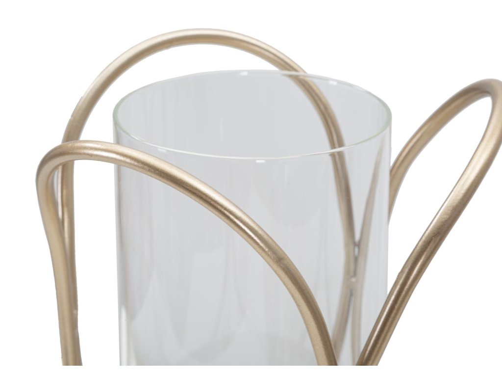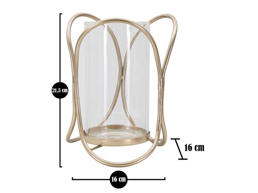 Stojan svíčku Ilox B je vyroben z kovu a skla. Kov je tmavší zlaté barvy. Má elegantní, minimalistické linie v glam stylu a jako celek je velice vzdušný a decentní. Uvnitř je vložen skleněný tubus na svíčku.