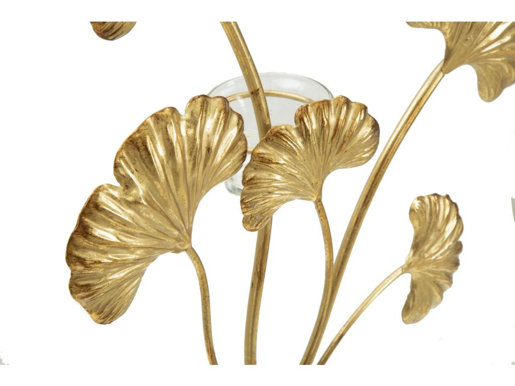 Svícen Leaf je vyroben z kovu a skla v nádherném GLAM stylu. Má vzhled listů rostoucích různými směry, které uprostřed drží skleněnou misku na svíčku. Po vložení a zapálení svíčky vytvářejí intimní a relaxační atmosféru v každém interiéru.